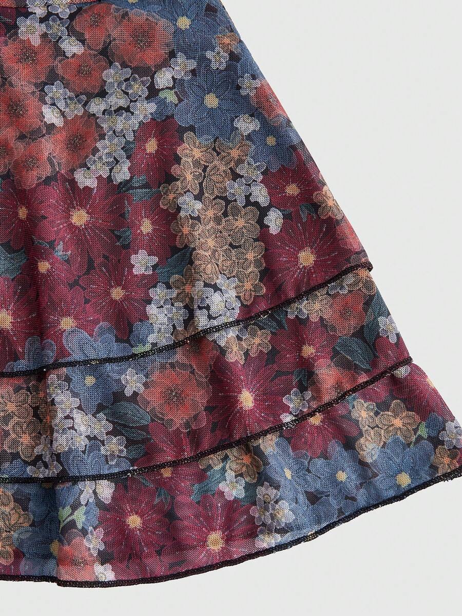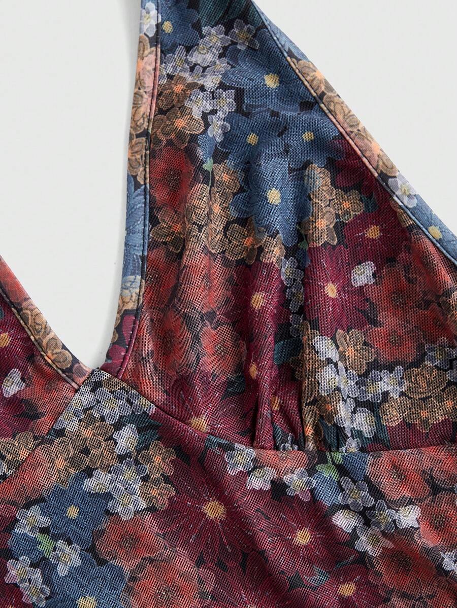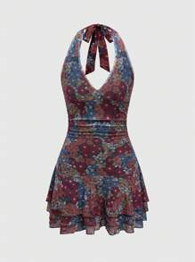 FattoColore Women's Floral Print Necktie Summer Dress