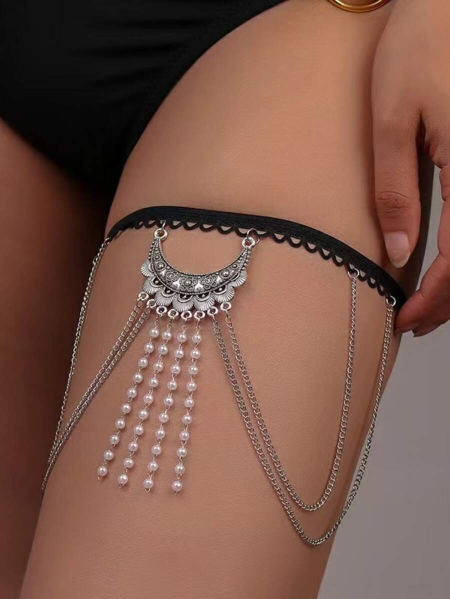 Faux Pearl Charm Thigh Chain