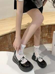 Faux Pearl Decor Flatform Mary Jane Shoes