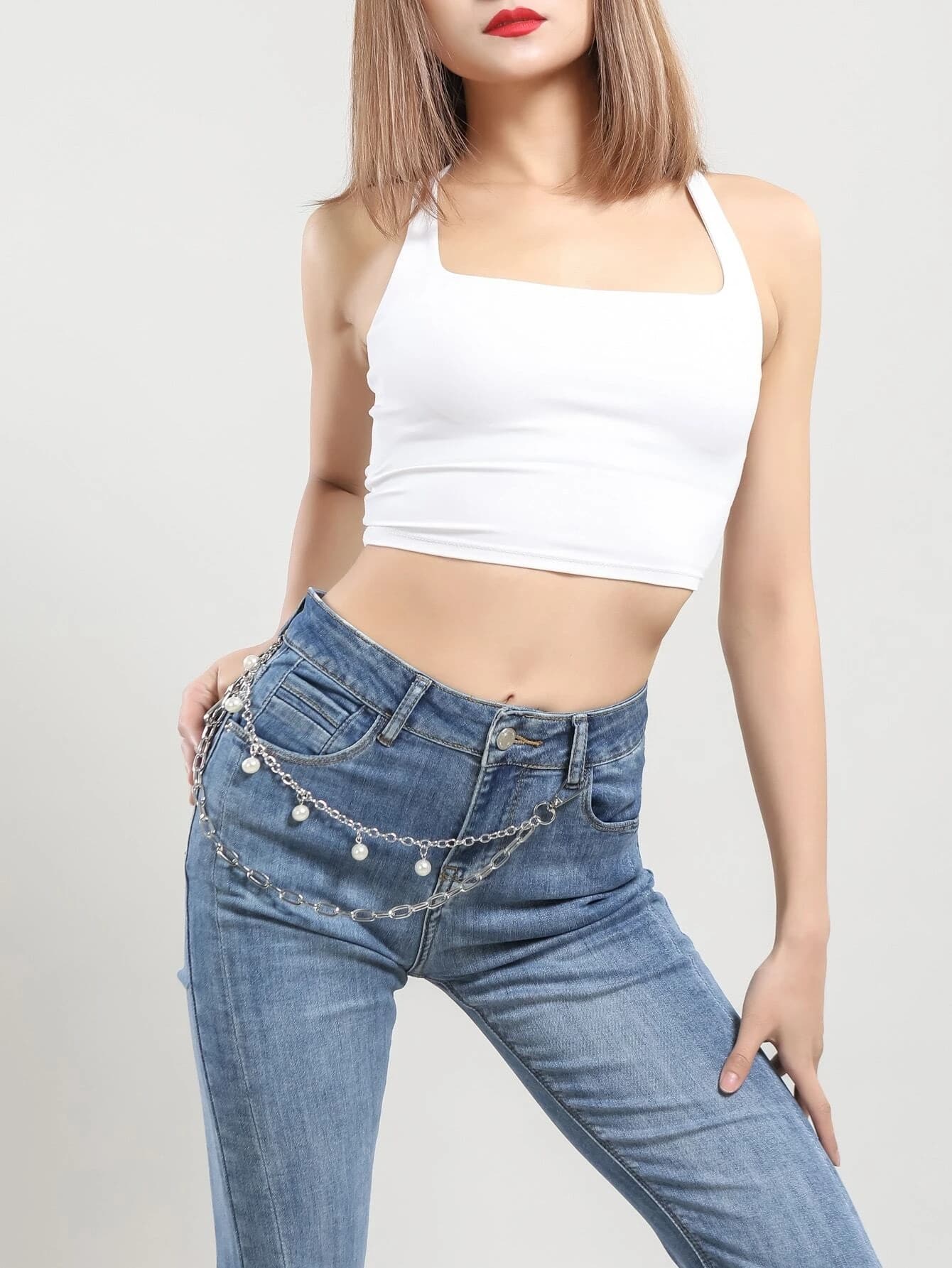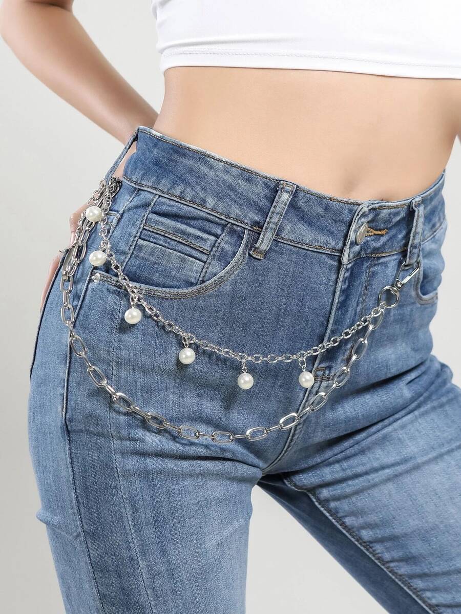 Faux Pearl Decor Pant Chain