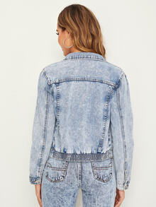 Flap Pocket Bleach Wash Button Up Denim Jacket