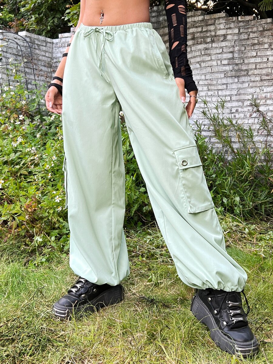 Flap Pocket Side Drawstring Waist Cargo Pants