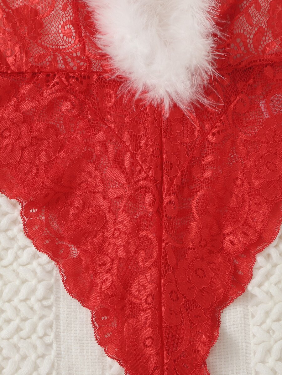 Floral Lace Fuzzy Trim Christmas Teddy Bodysuit