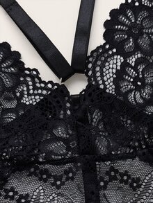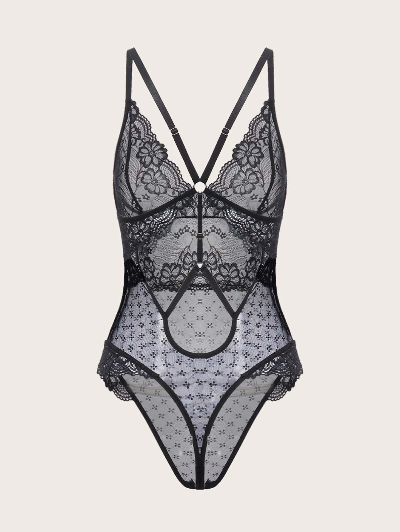 Floral Lace Ring Linked Cut Out Teddy Bodysuit