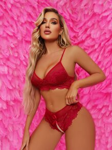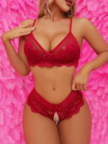 Floral Lace Scallop Trim Crotchless Lingerie Set