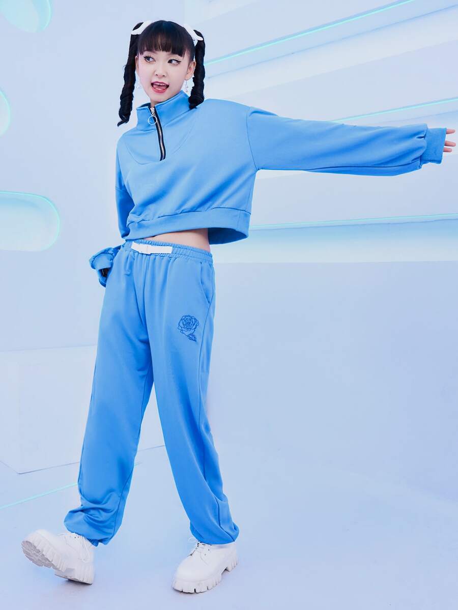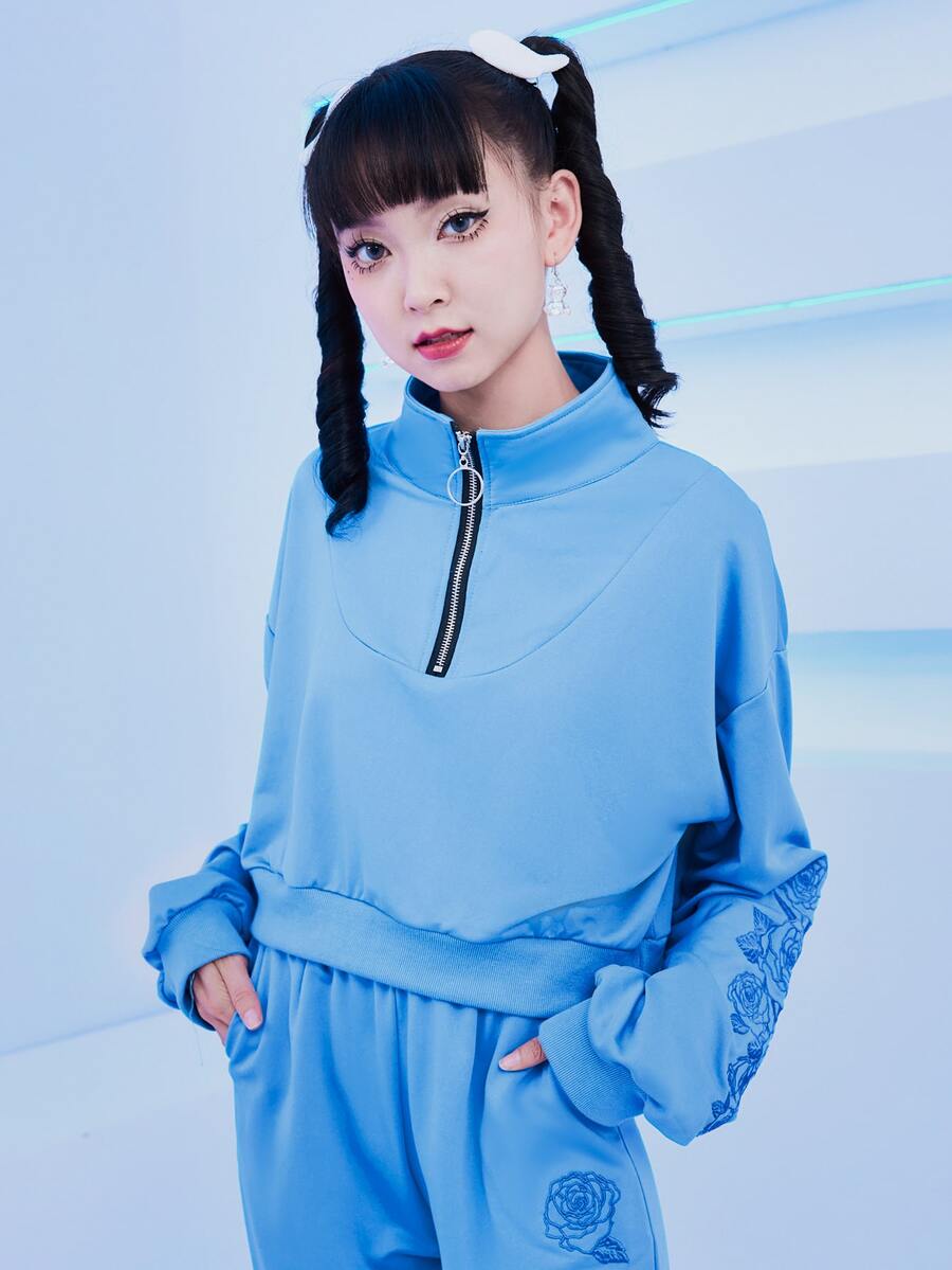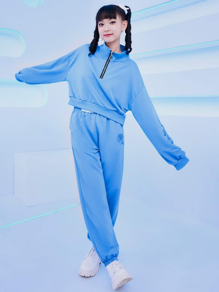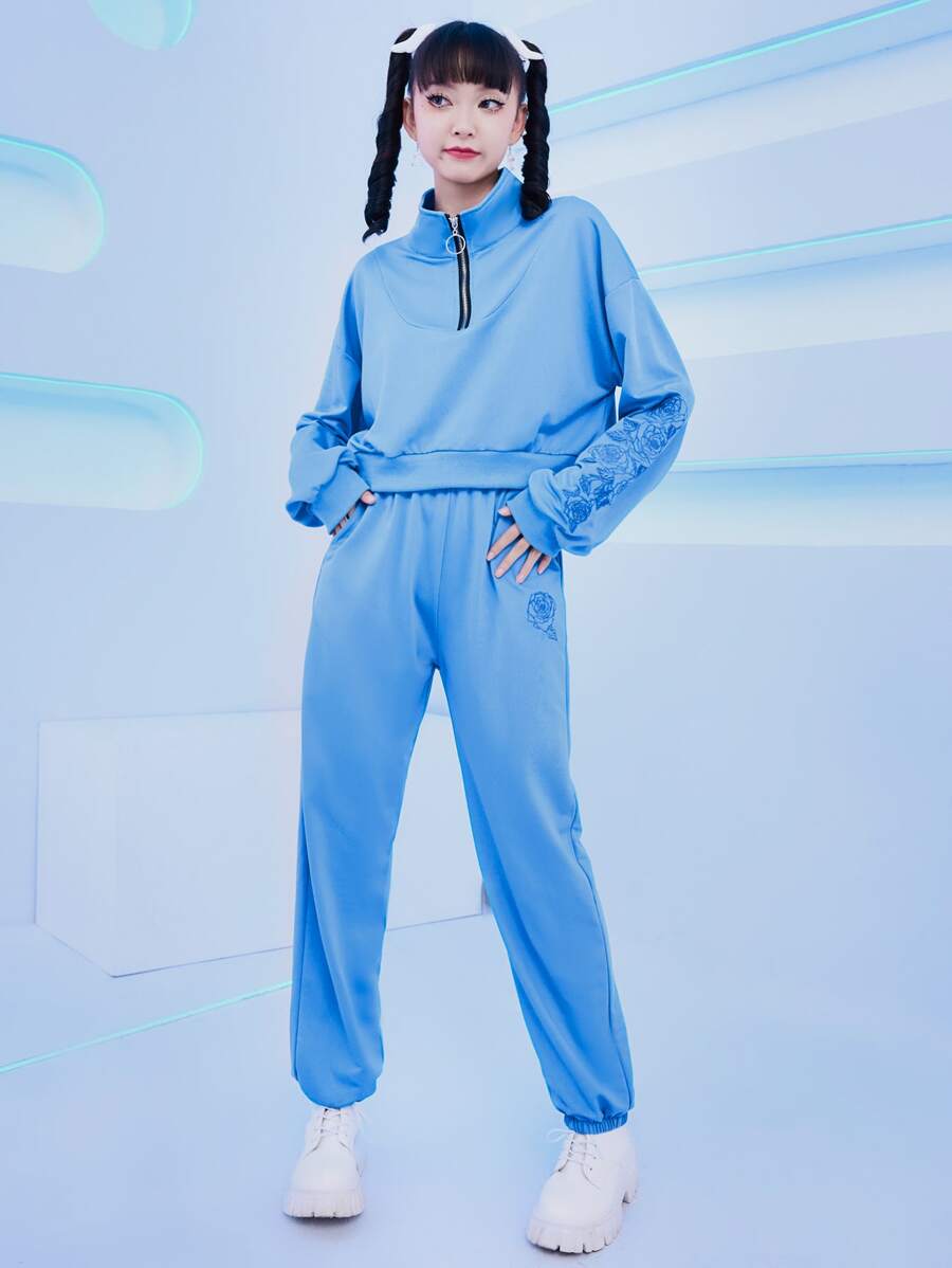 Floral Print Half Zip Drop Shoulder Sweatshirt & Sweatpants