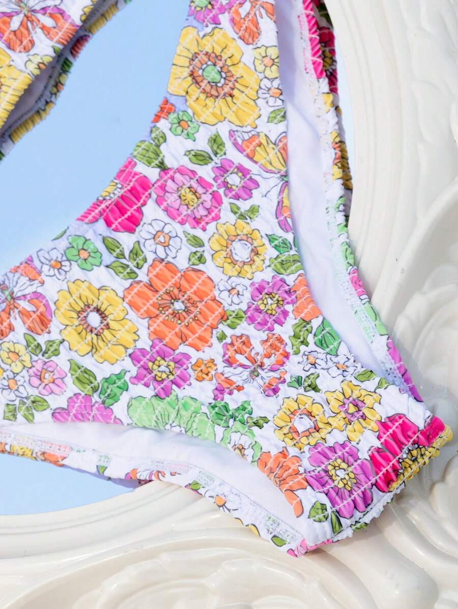 Floral Print Smocked Bikini Set For Summer Beach, Vacation Bikini