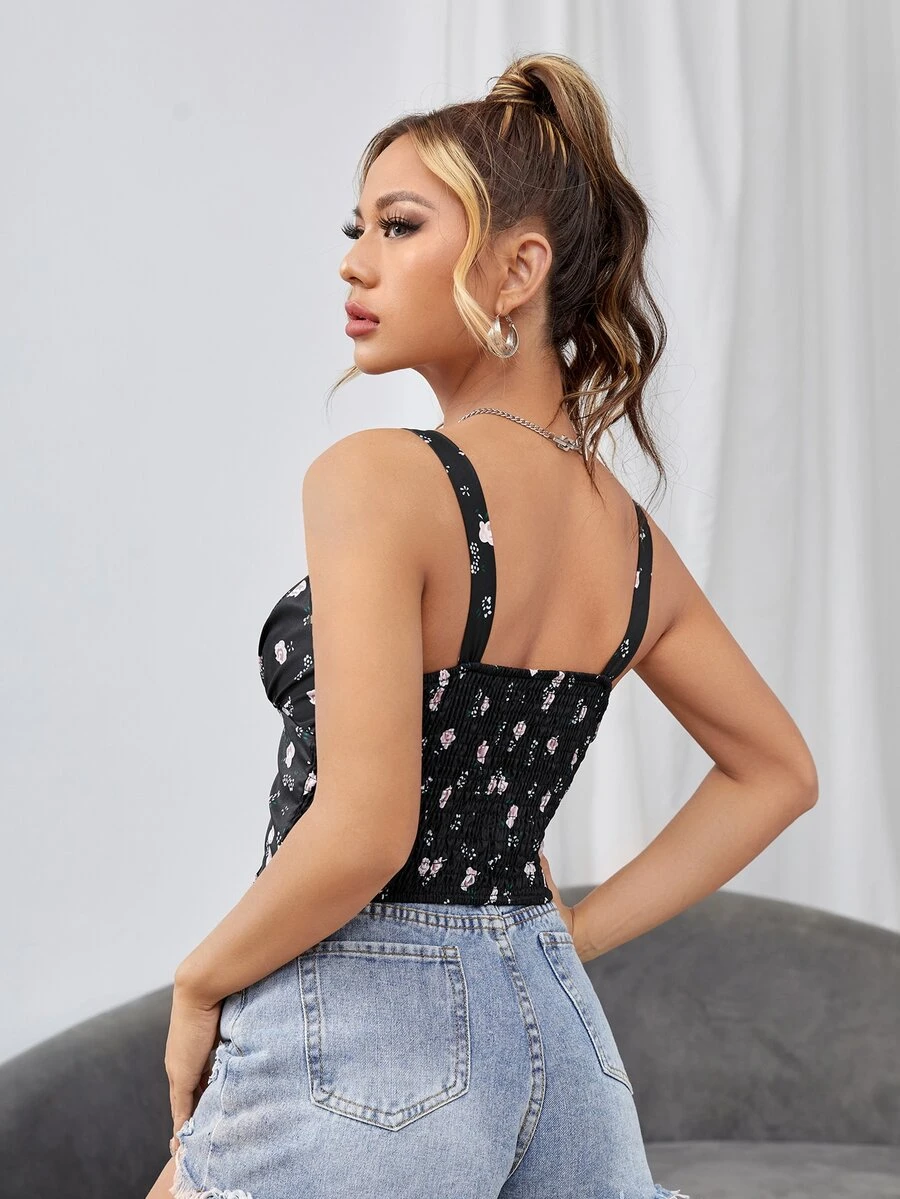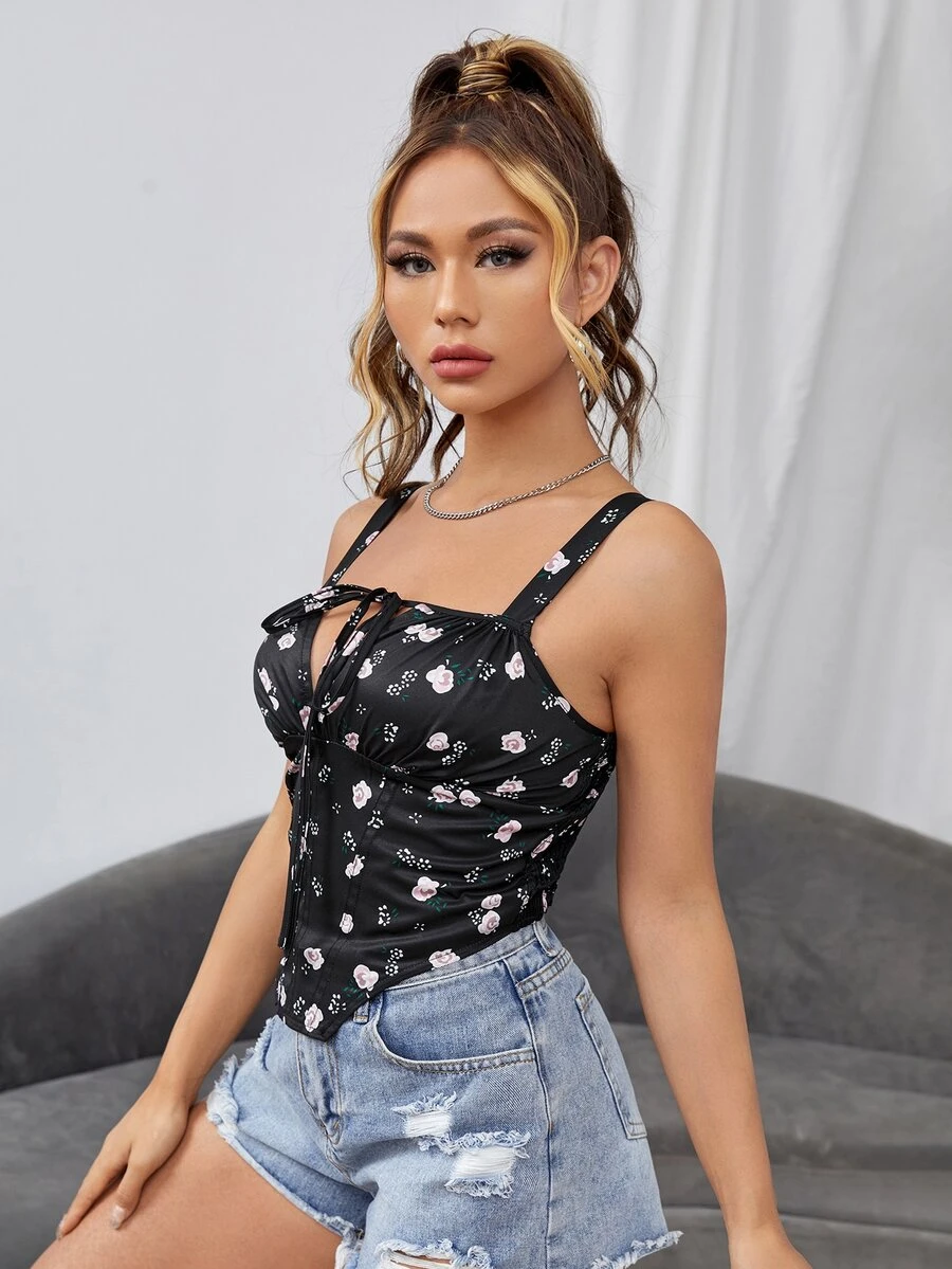Floral Print Tie Front Cami