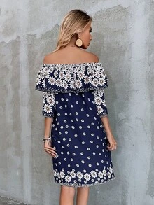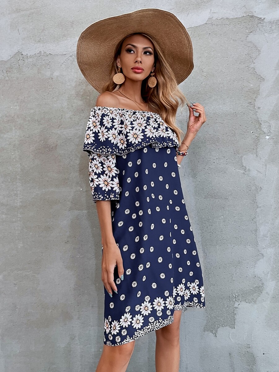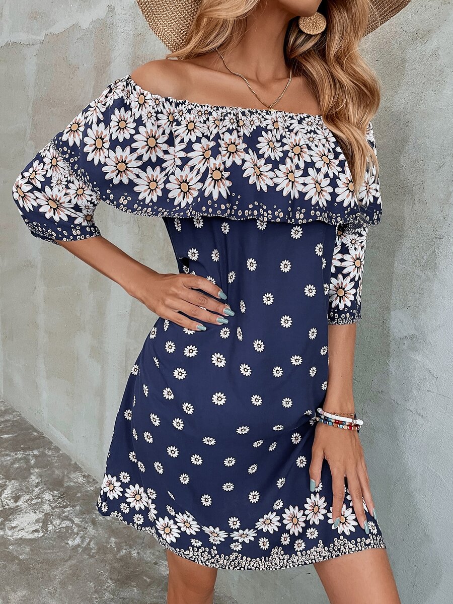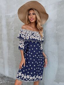 Flounce Off Shoulder Floral Print Dress