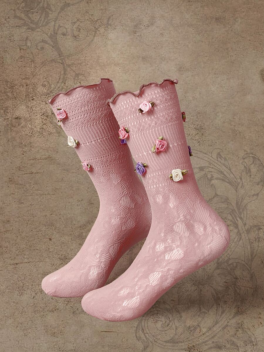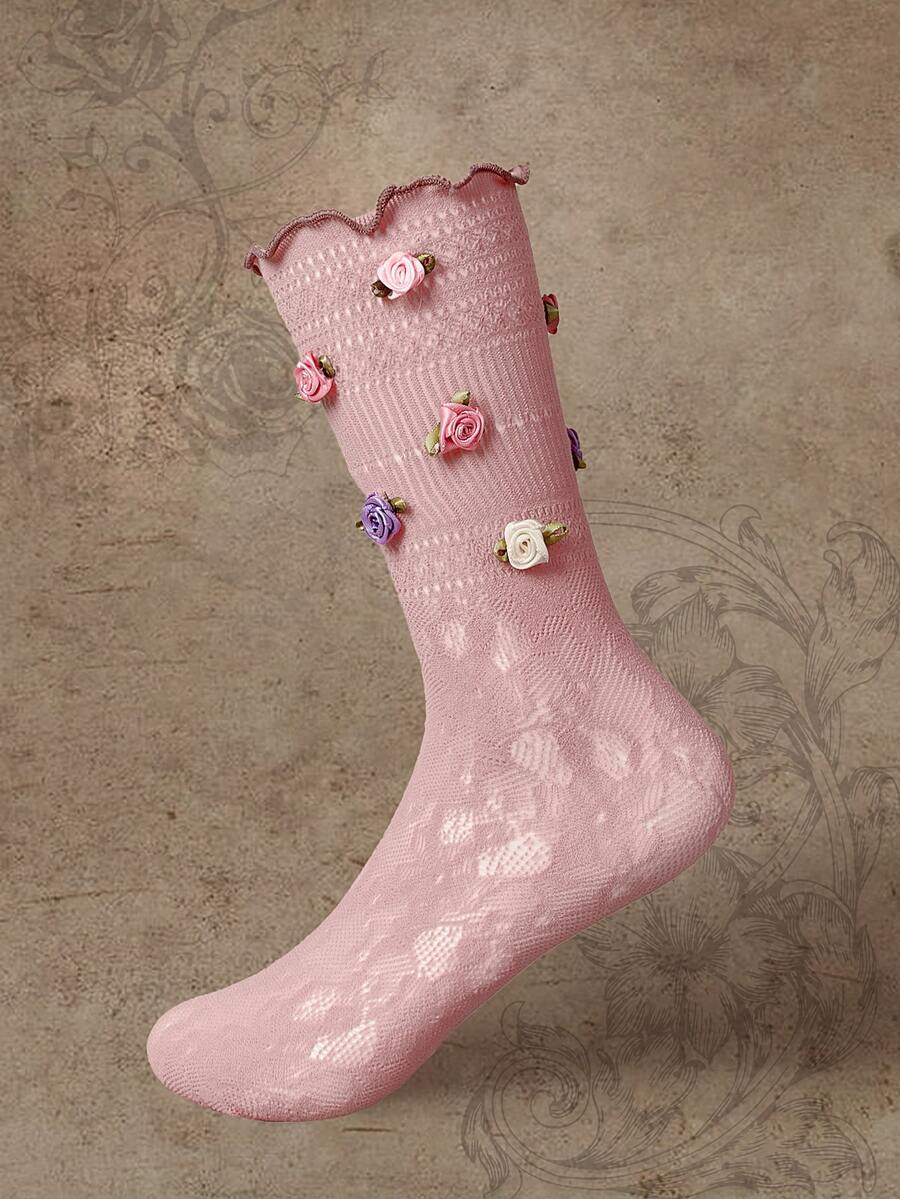Flower Decor Crew Socks