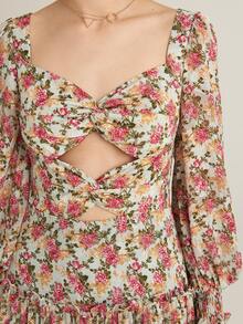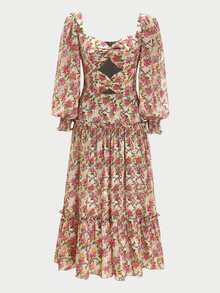 Flowing Puffed Sleeve Floral Dress