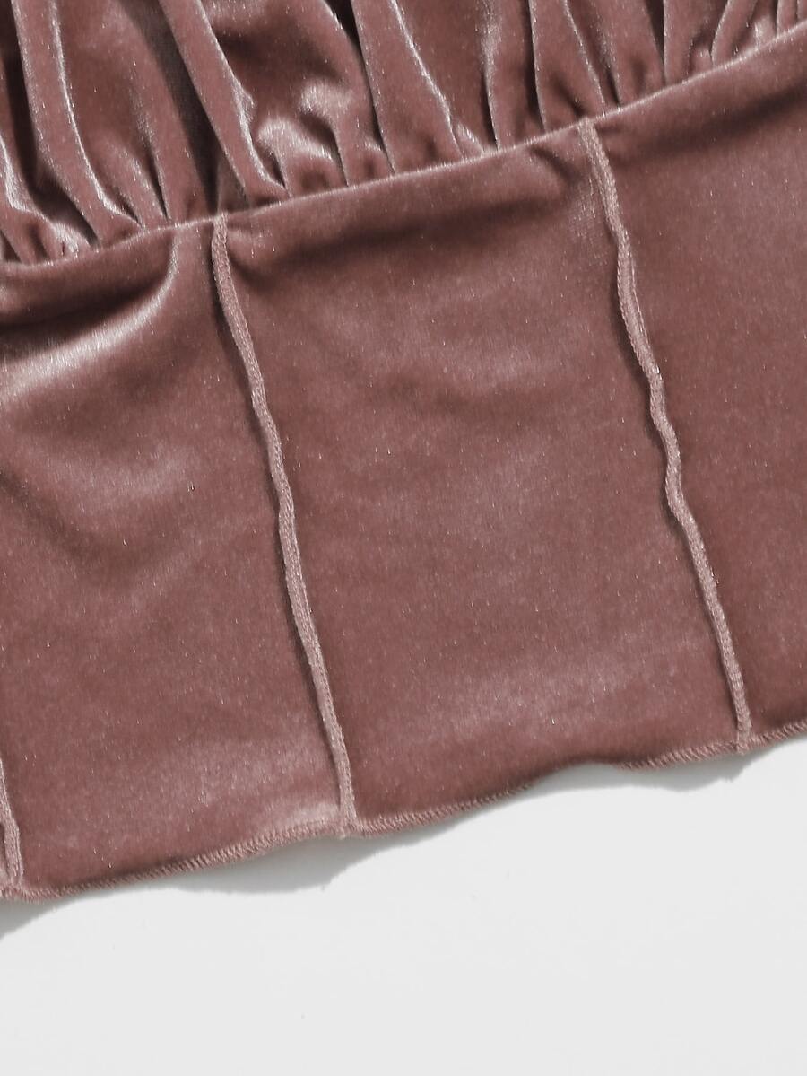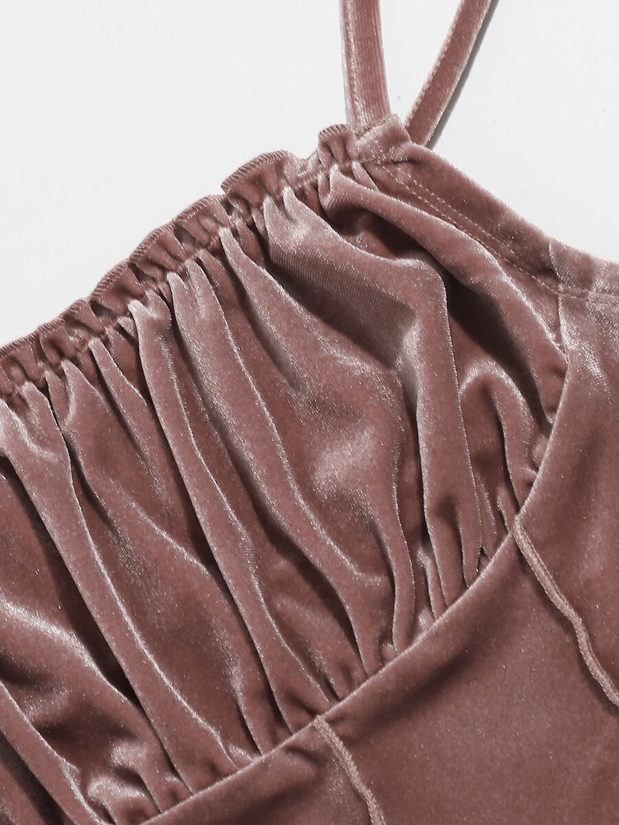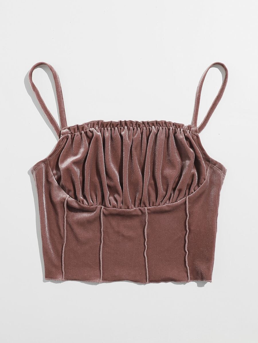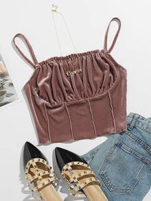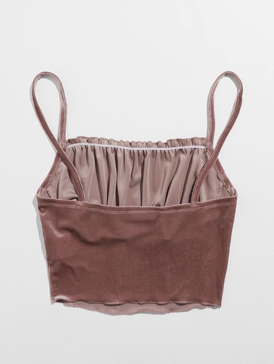 Frill Trim Ruched Bust Velvet Crop Cami Top
