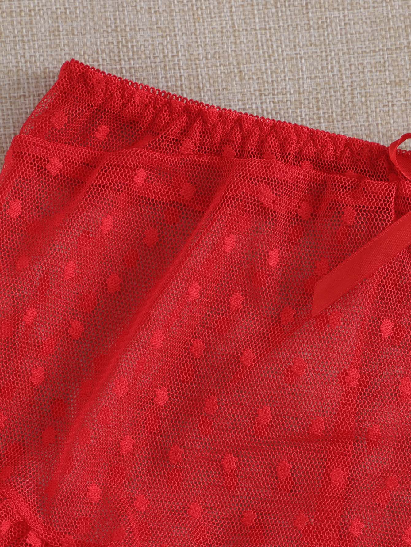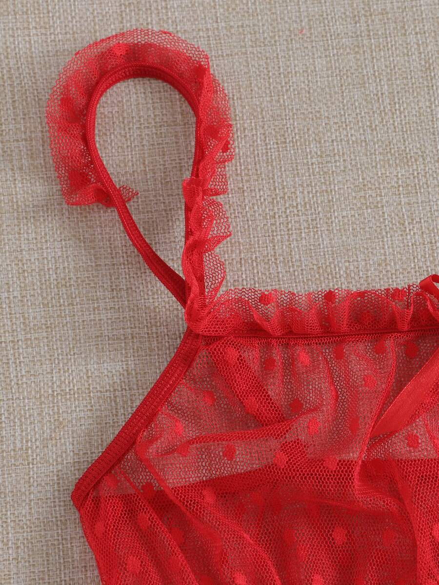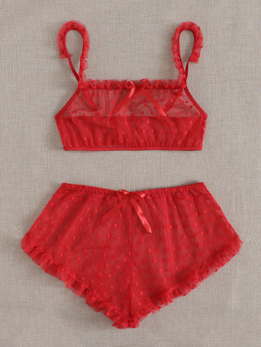 Frill Trim Sheer Mesh Lingerie Set