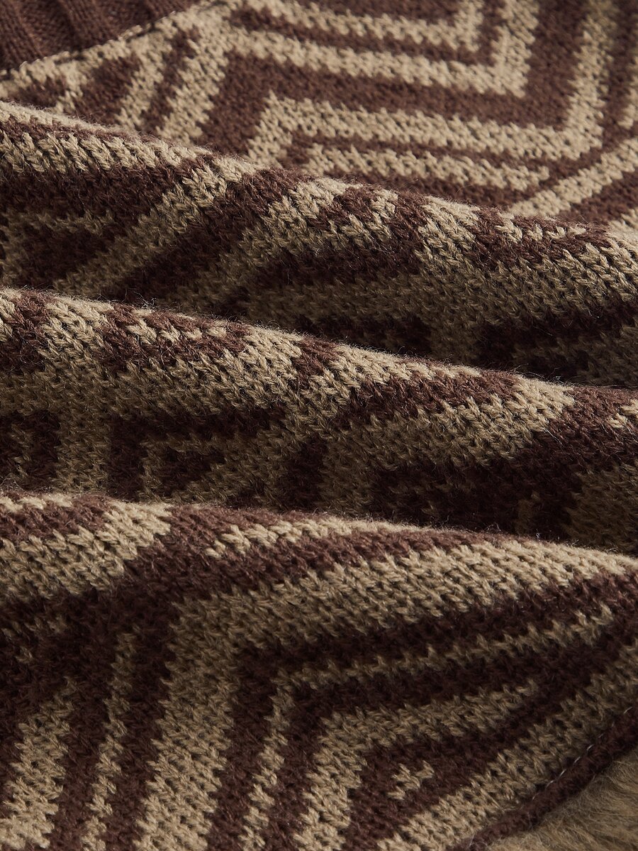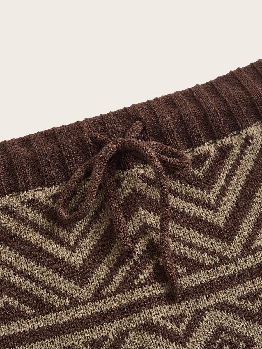 Geo Pattern Fuzzy Trim Knit Skirt