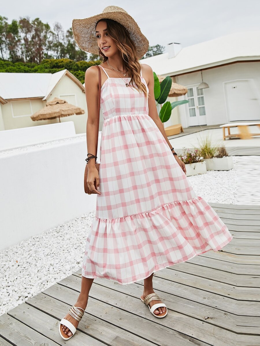 Gingham Print Flounce Hem Cami Dress