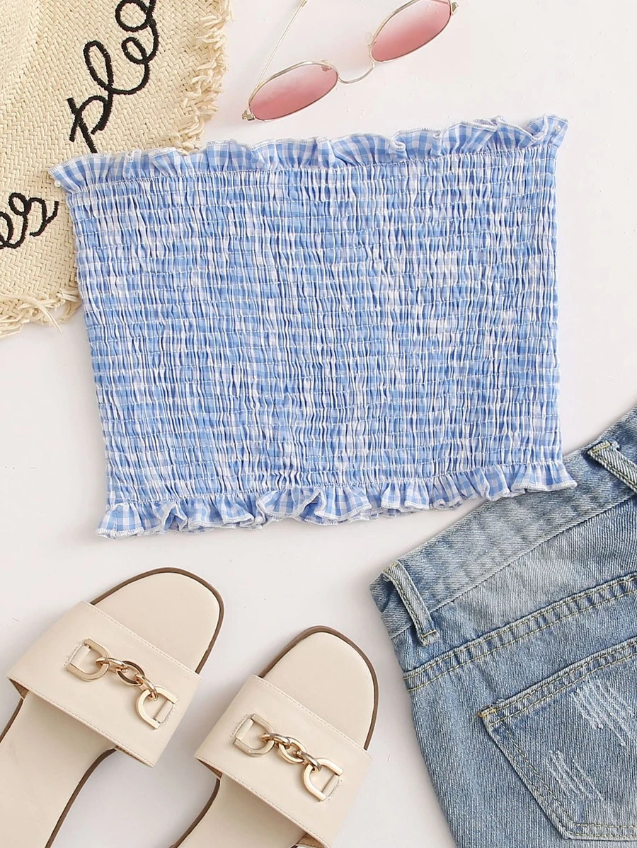 Gingham Shirred Tube Top