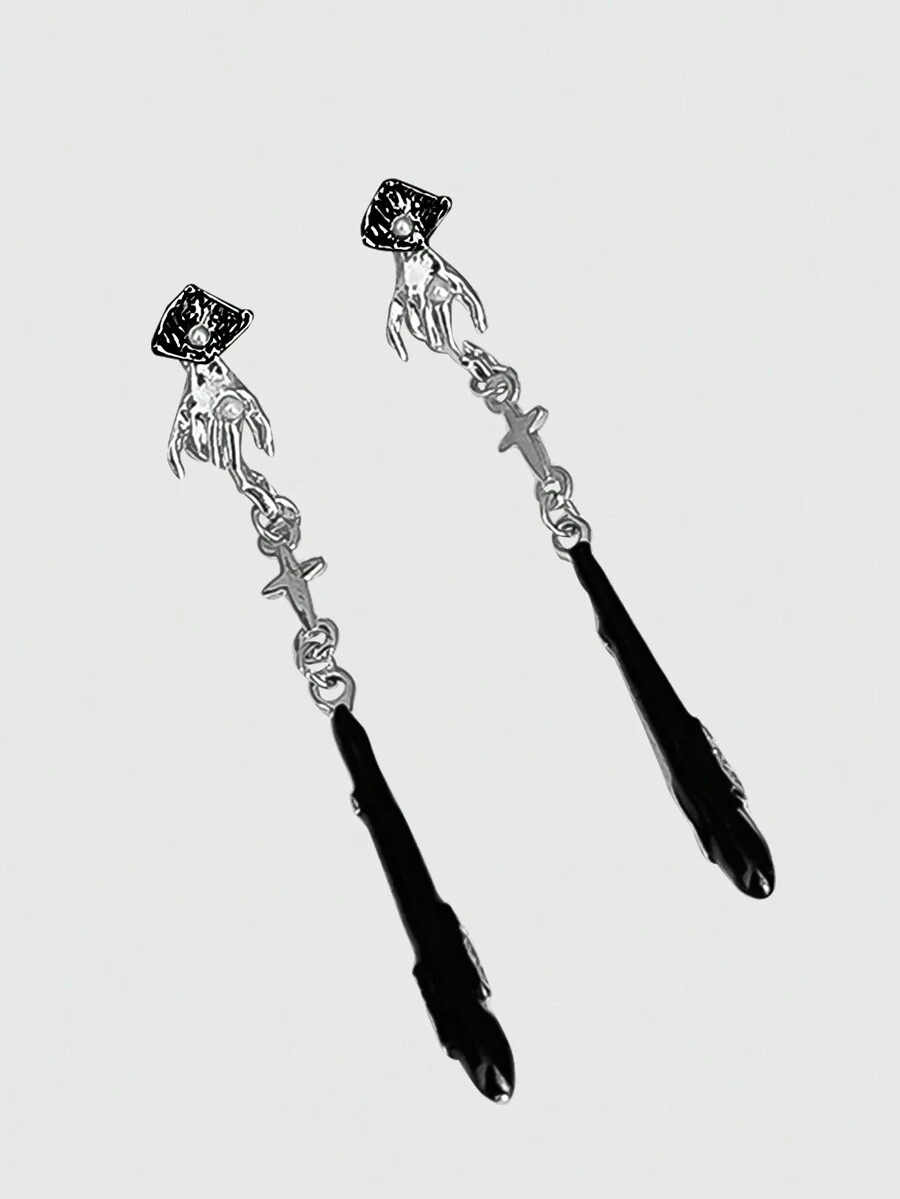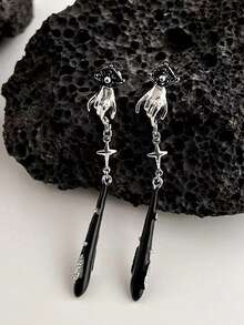 Goth 1 Pair Handprint Black Waterdrop Shape Earrings