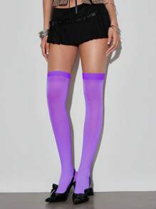 Goth 1 Pair Minimalist Over-The-Knee Socks, Sexy Purple Solid Color School Style Thigh High Socks, Ultra-Thin Elastic Sheer Tights