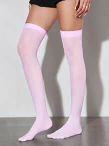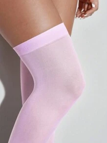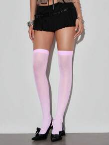 Goth 1 Pair Minimalist Over-The-Knee Socks, Sexy Solid Pink School Style Thigh High Socks, Ultra-Thin Elastic Sheer Tights