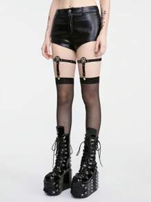 Goth 1 Pair Of Pentagram Garter Belt Leg Ring And 1 Pair Of Women Over Knee Socks Set