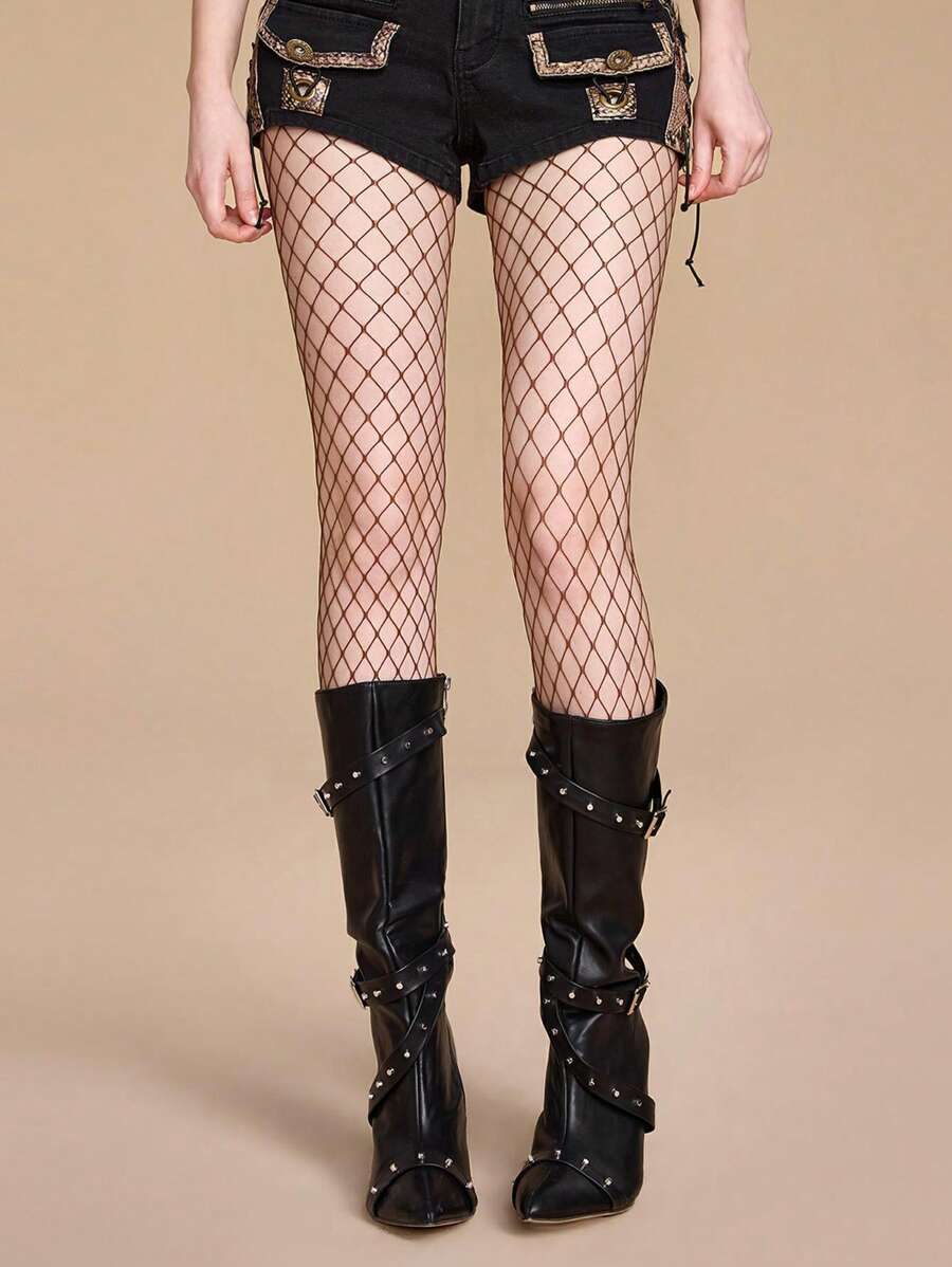 Goth 1 Pair Women's Coffee Colored Fashion Fishnet Socks, Suitable For All Seasons