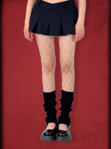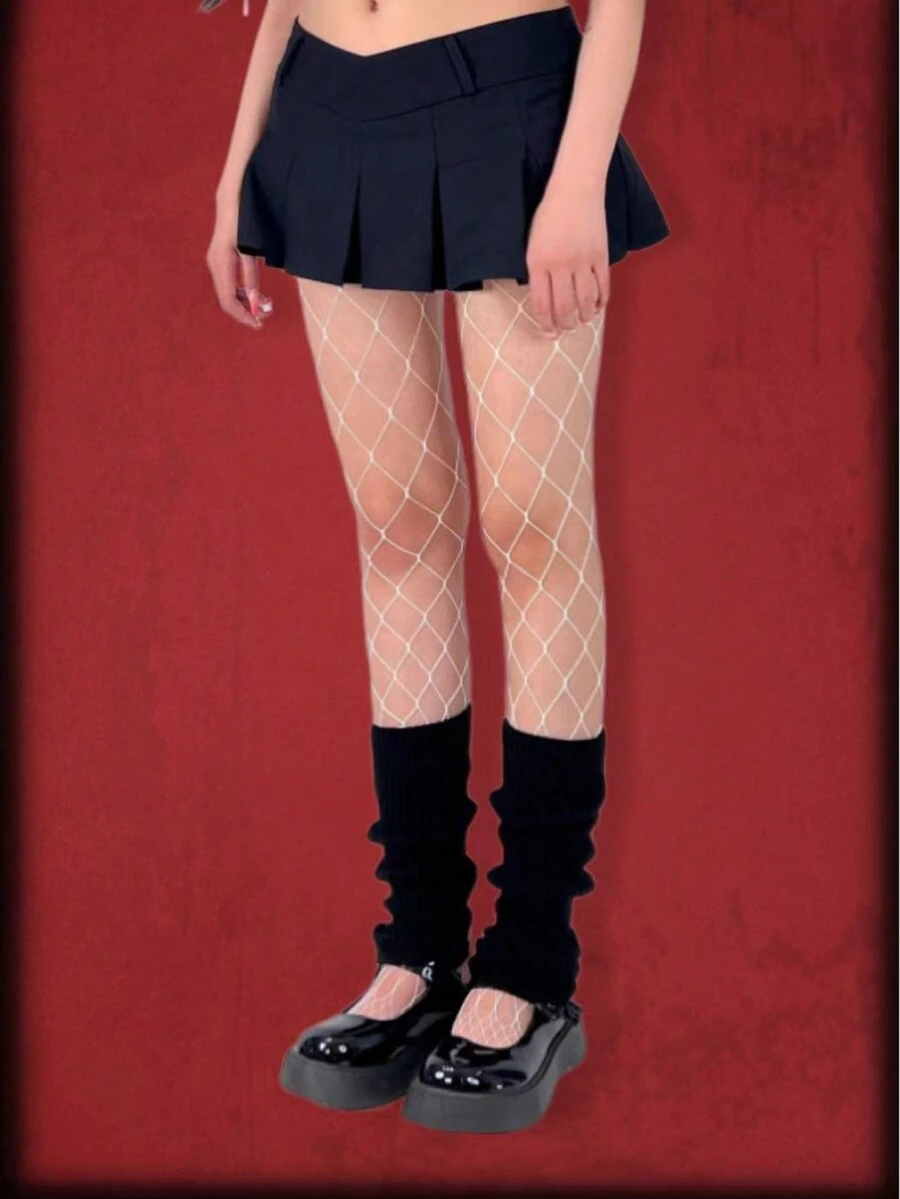 Goth 1pair Black Leg Warmers + 1pc White Fishnet Stocking Set