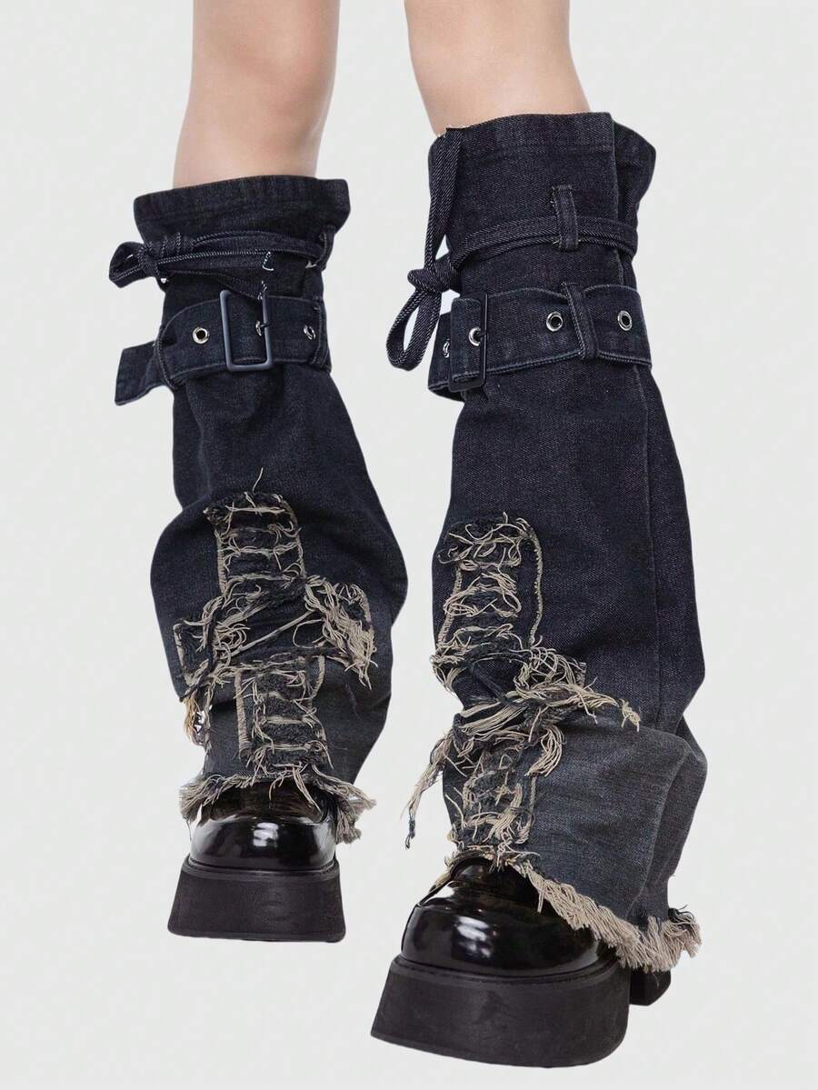 Goth 1pair Dark-Colored Leg Warmers, Y2K Cross Design Leg Warmers, Gradient Lace-Up Flared Boots Covers