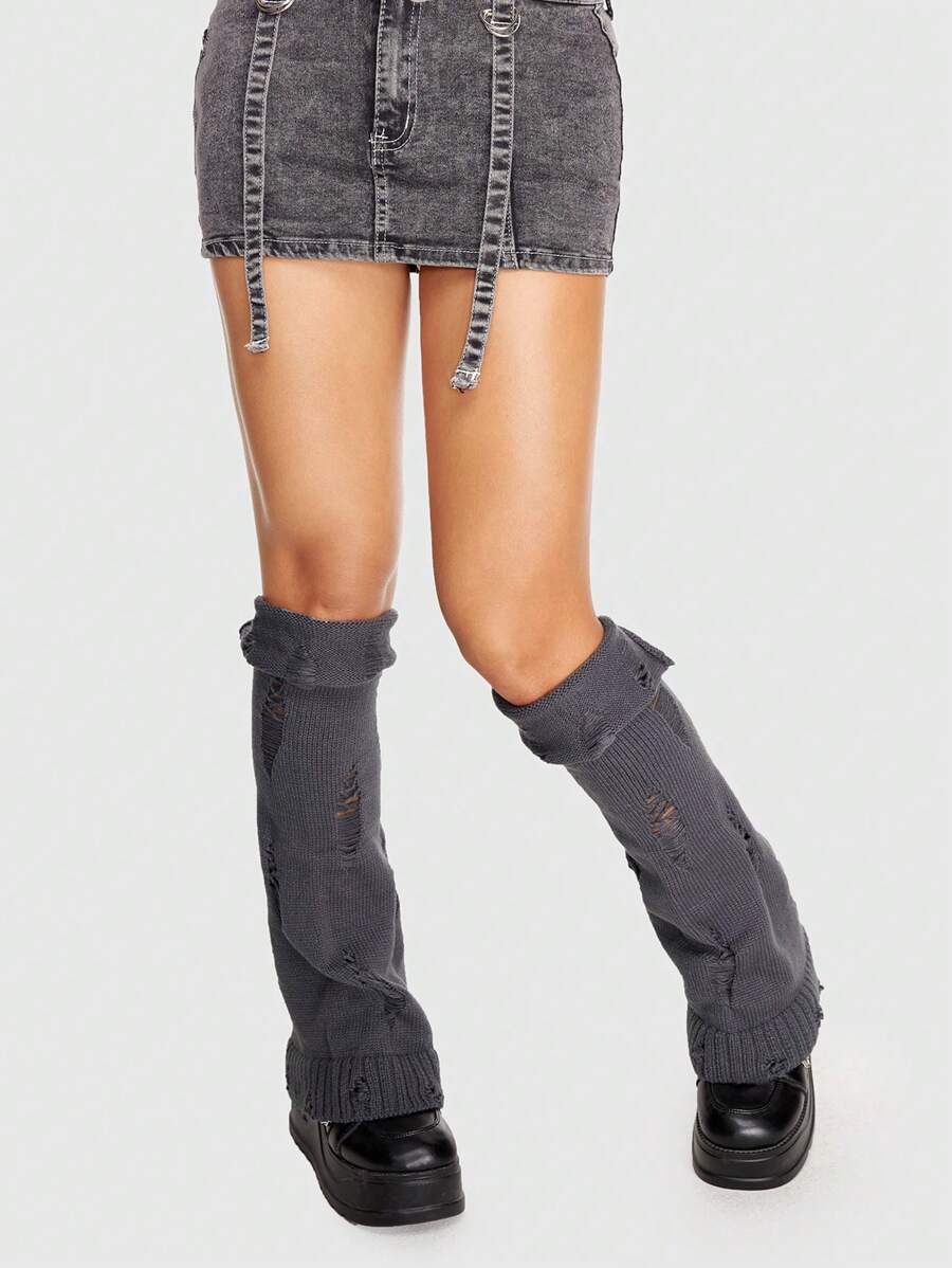 Goth 1pair Dark Gray Flared Leg Warmers With Rolled Edges And Distressed Detail
