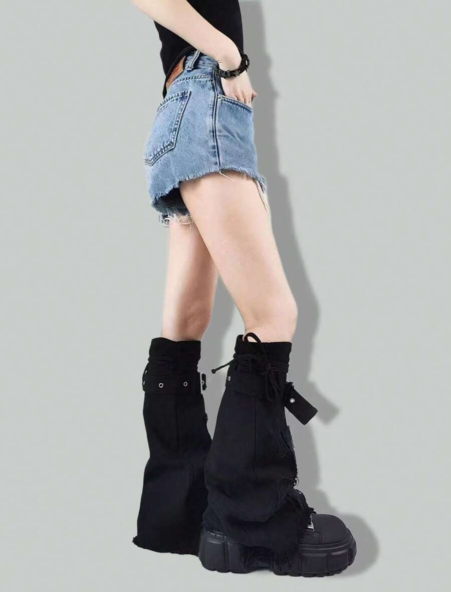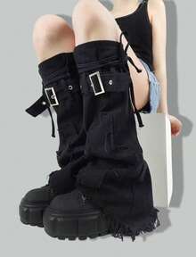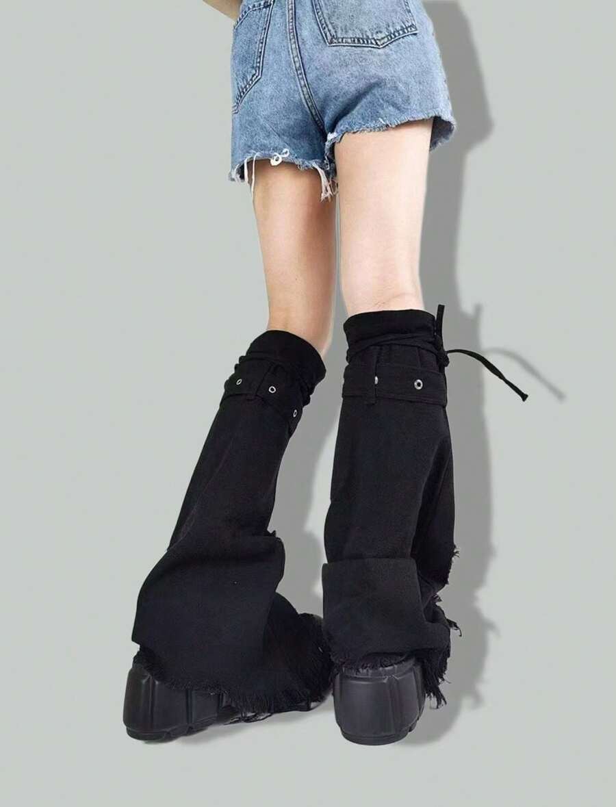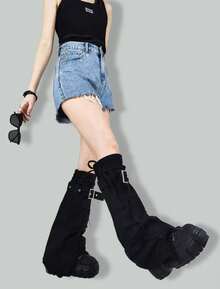 Goth 1pair Dark Spiral Patterned Faux Leather Leg Sleeves For Women