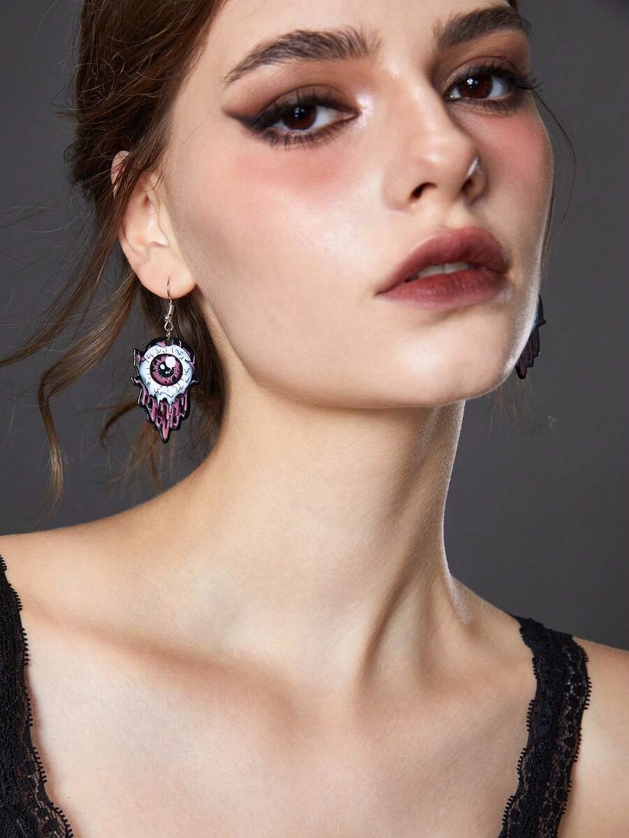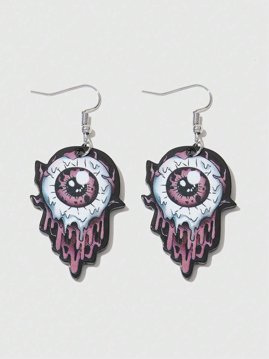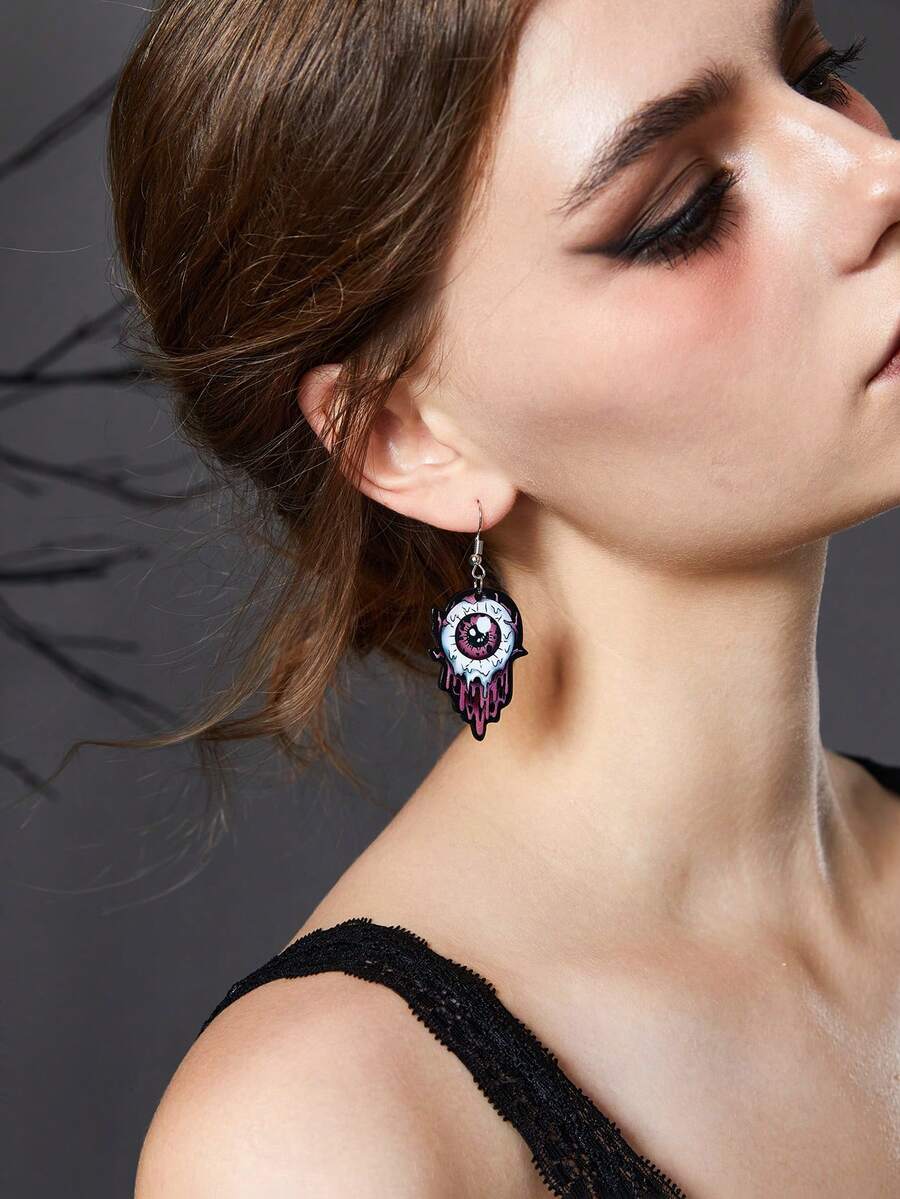 1pair Europe And America Gothic Style Dark Acrylic Eye Ball Design Dangle Earrings