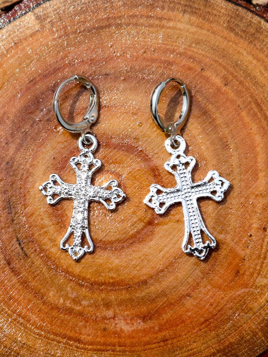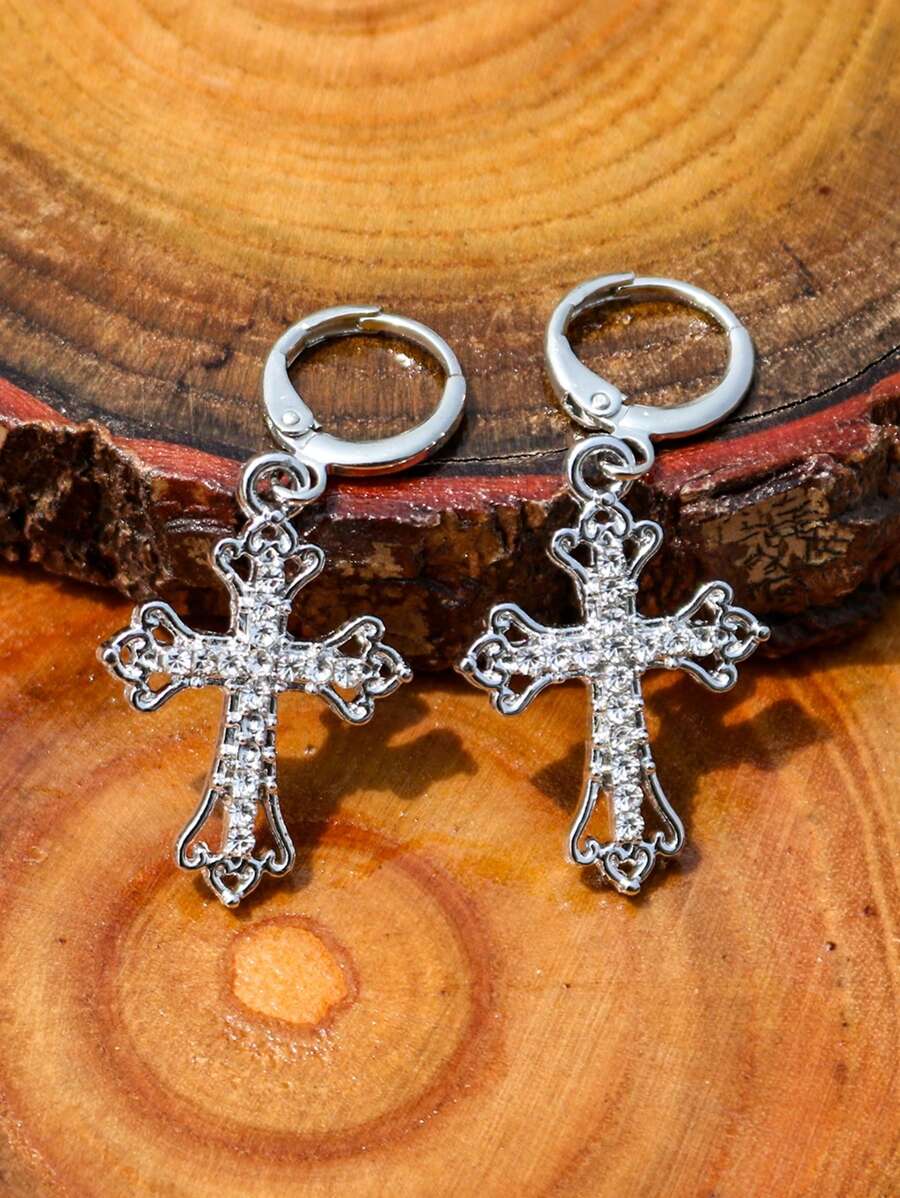 Goth 1pair Fashion Zinc Alloy Rhinestone Decor Cross Drop Earrings For Women For Daily Decoration