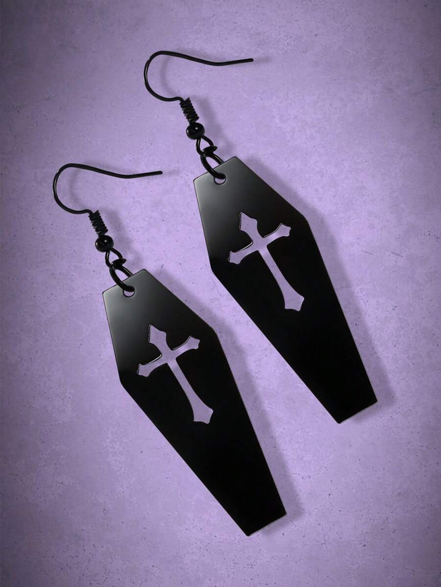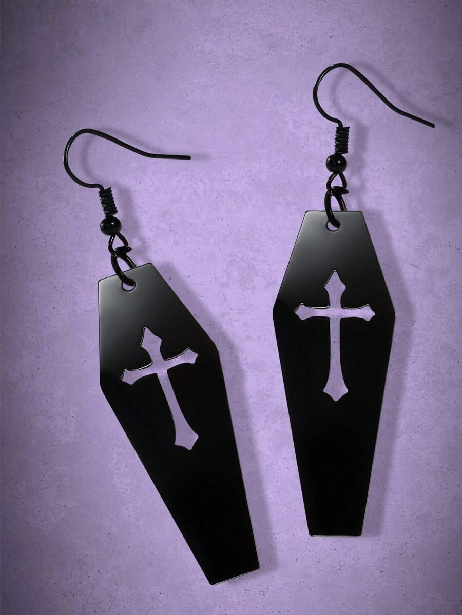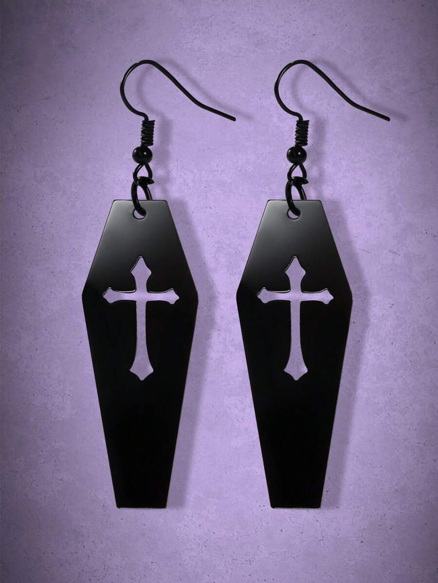 Goth 1pair Funky Copper Alloy Cross Hollow Out Geometric Drop Earrings For Women For Daily Decoration