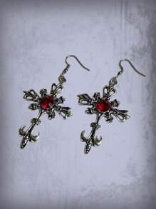 Goth 1pair Funky Iron Alloy Rhinestone Decor Cross Drop Earrings For Women For Daily Decoration