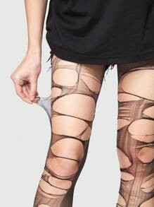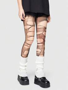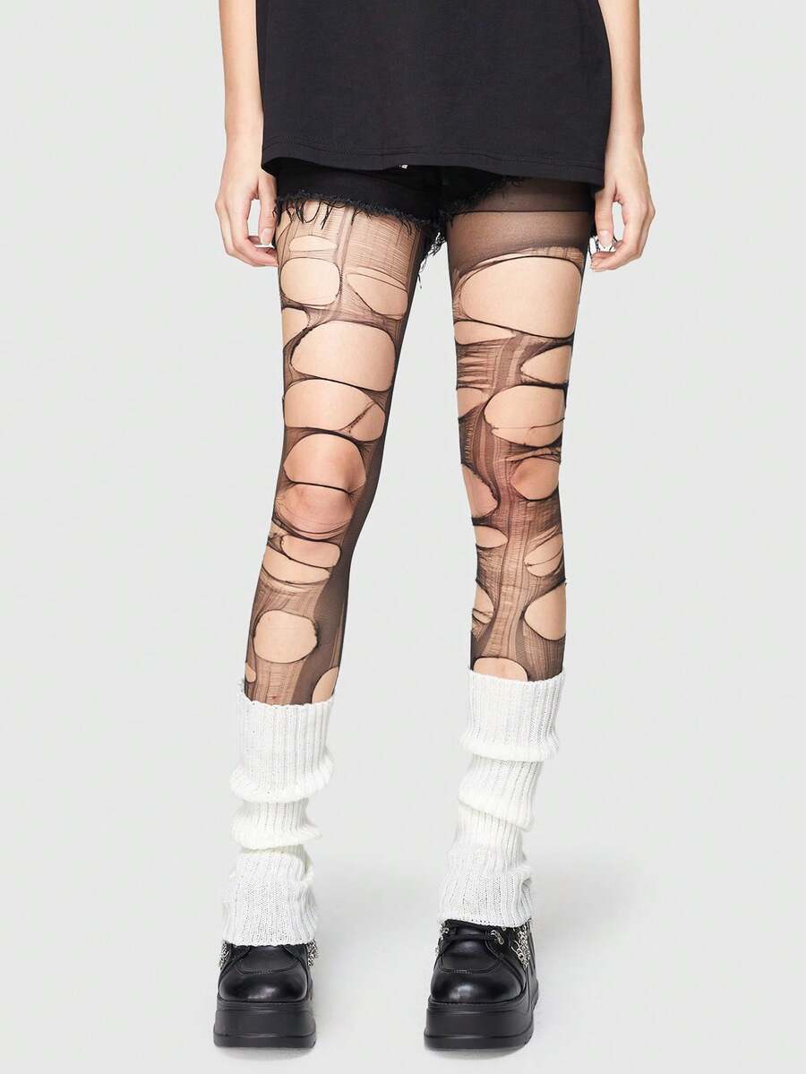 Goth 1pair Of Self-ripping Stockings + Leg Sleeves