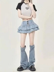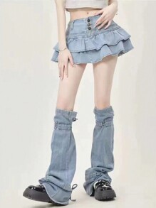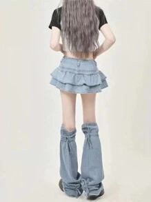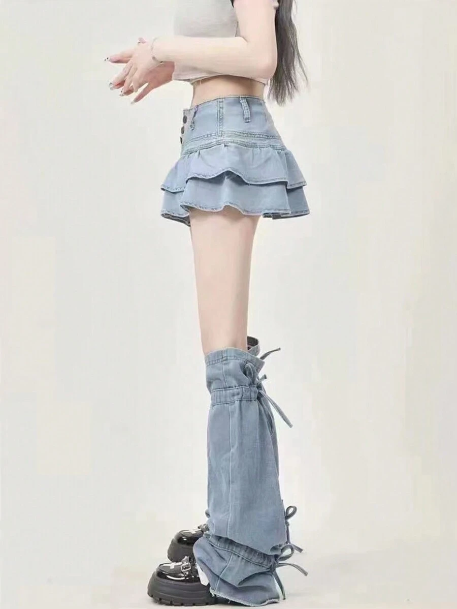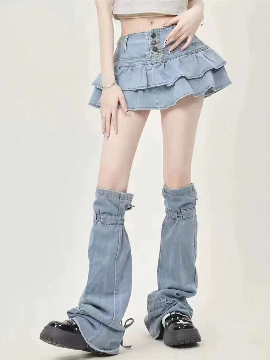 Goth 1pair Simple Vintage Light Blue Denim Leg Warmers