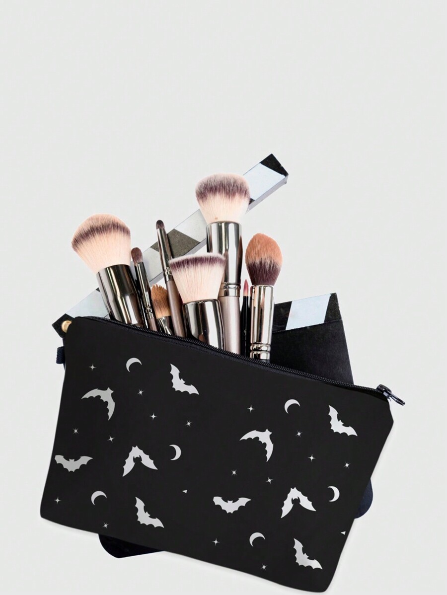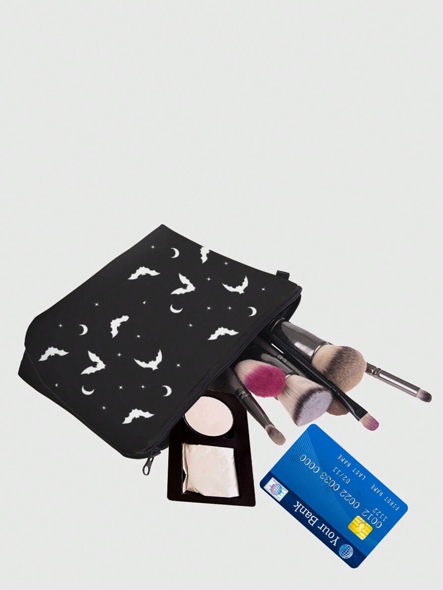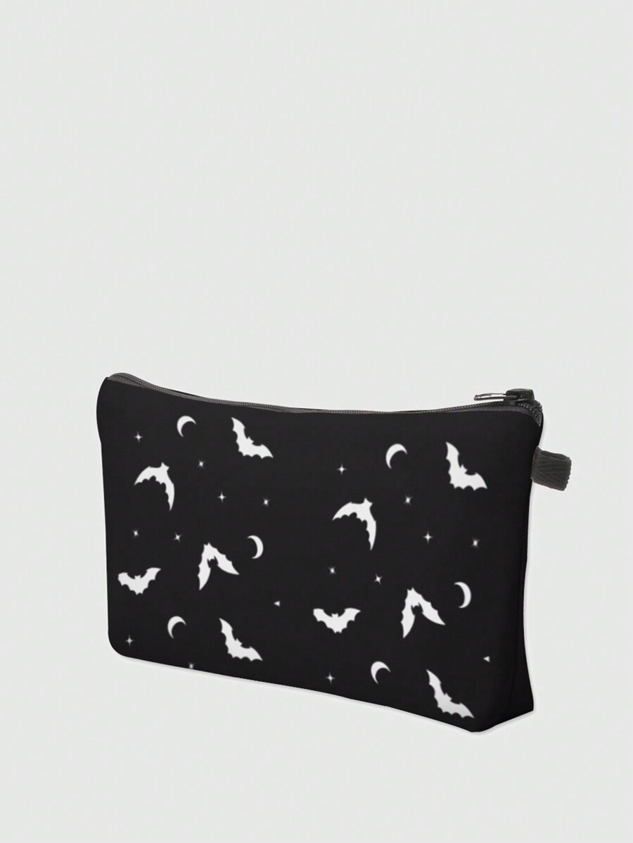 Goth 1pc Bat Pattern Zippered Makeup Bag, Halloween