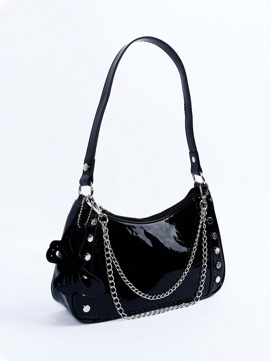 Goth 1pc Black Punk Style Rivet Chain Butterfly Shoulder Handbag