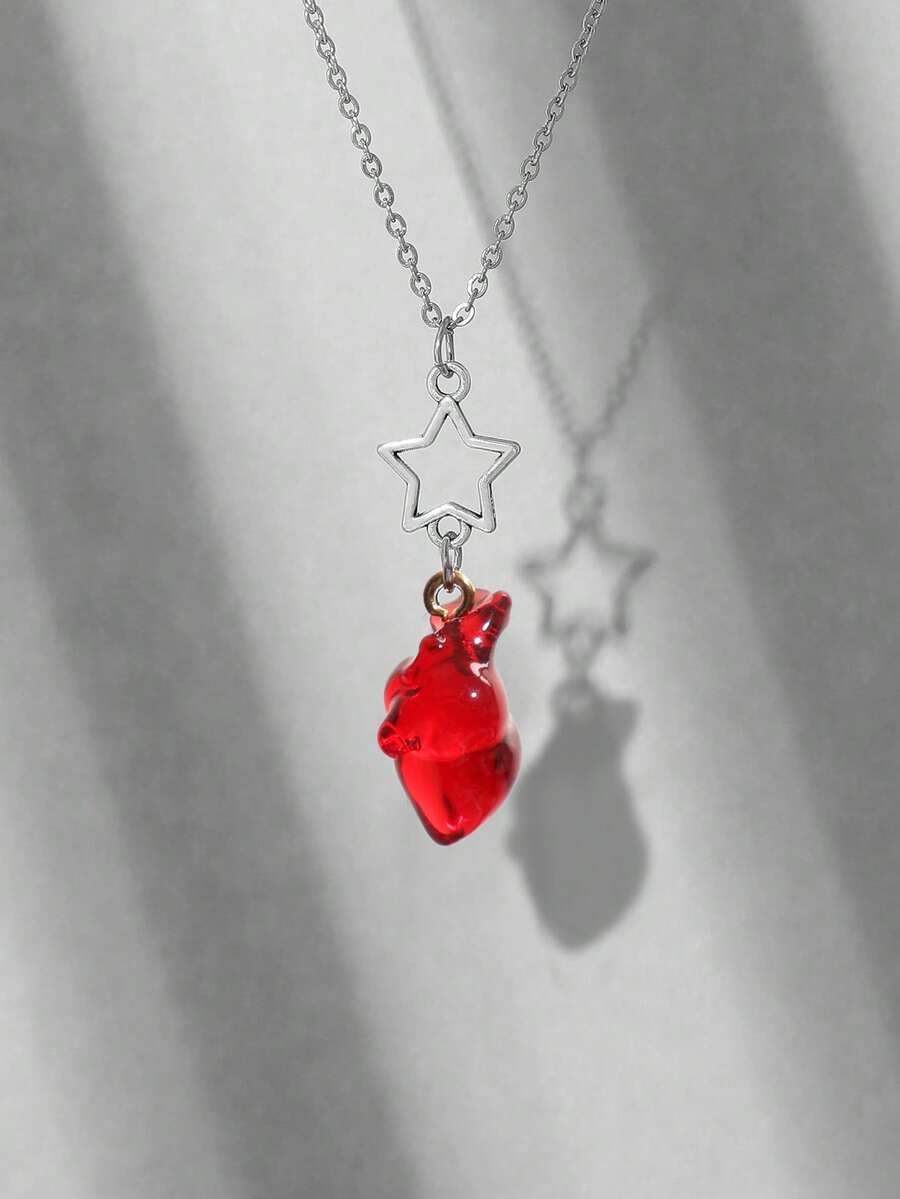 Goth 1pc Fashion Zinc Alloy Star & Heart Charm Necklace For Women For Daily Decoration