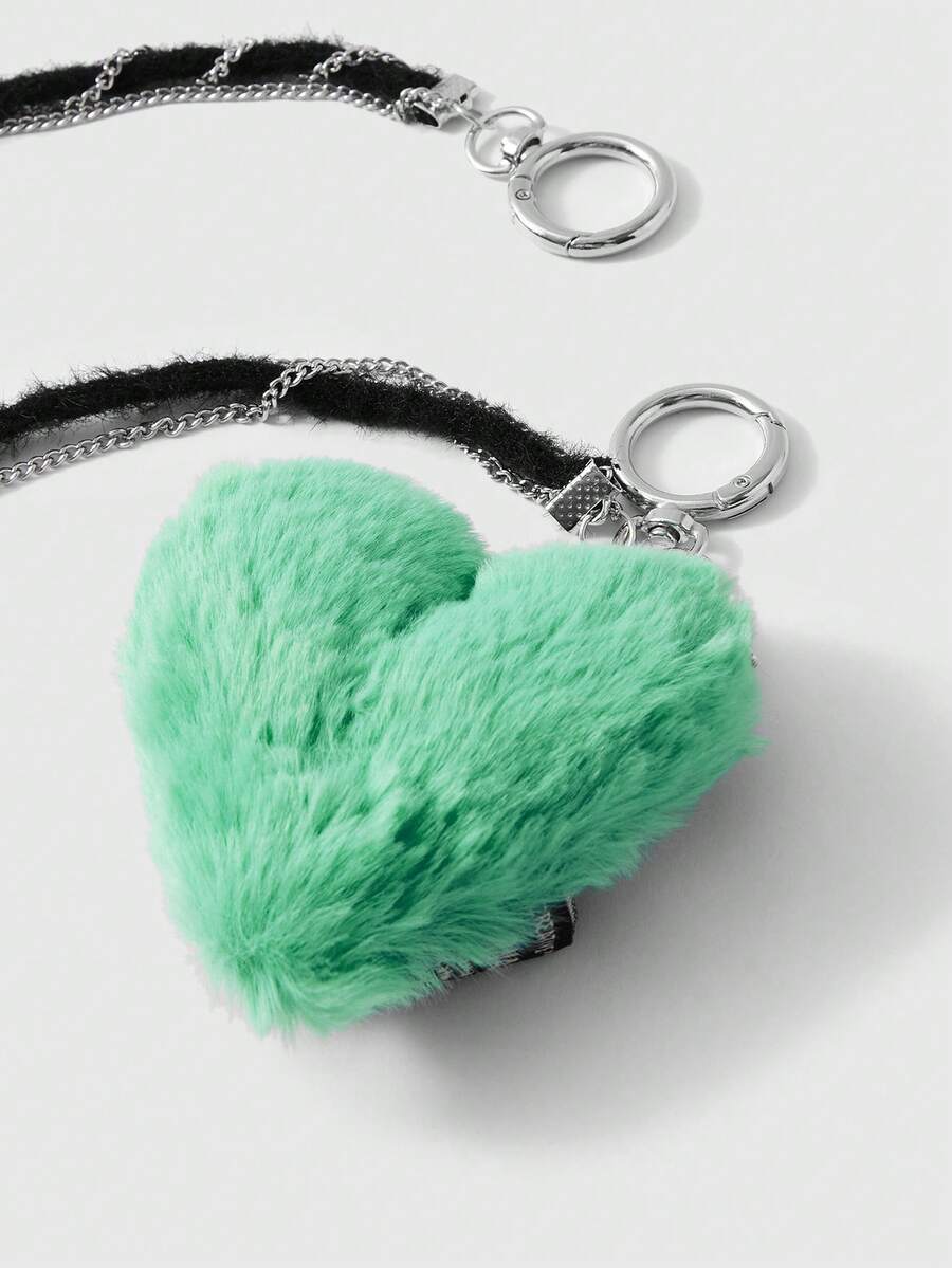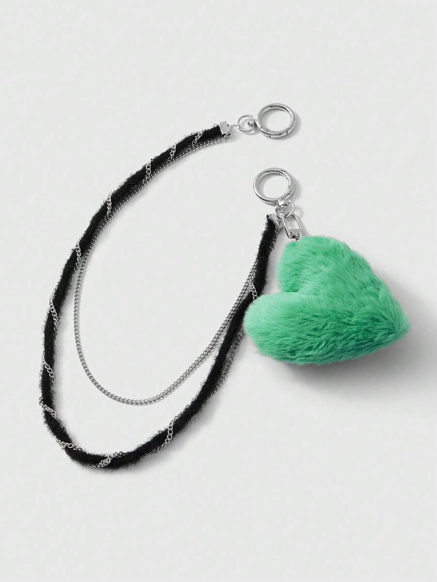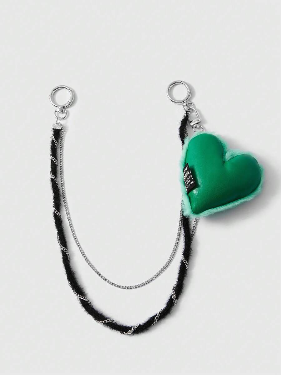Goth 1pc Fashionable Versatile High-Quality Silver Chain Black Plush Green Leather 3D Heart Shaped Waist Chain/Belt For Women, Suitable For Daily Wear Or Festive Gift