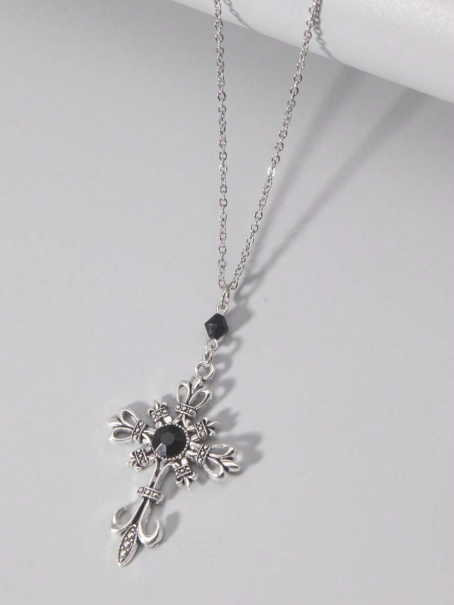 1pc Gothic Cross Pendant Necklace, Gift For Women, Party & Holiday, Halloween