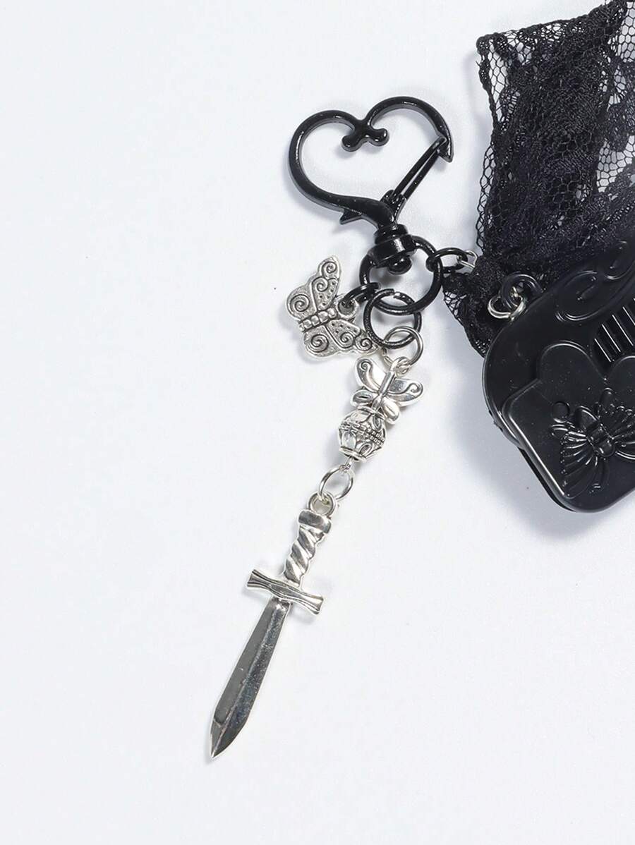 1pc Gothic Style Bowknot Foldable Comb, Bag Pendant, Keychain, Dark Color Bag Decoration