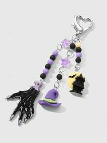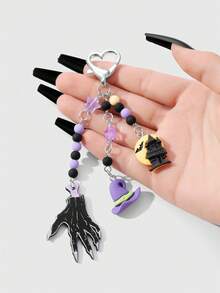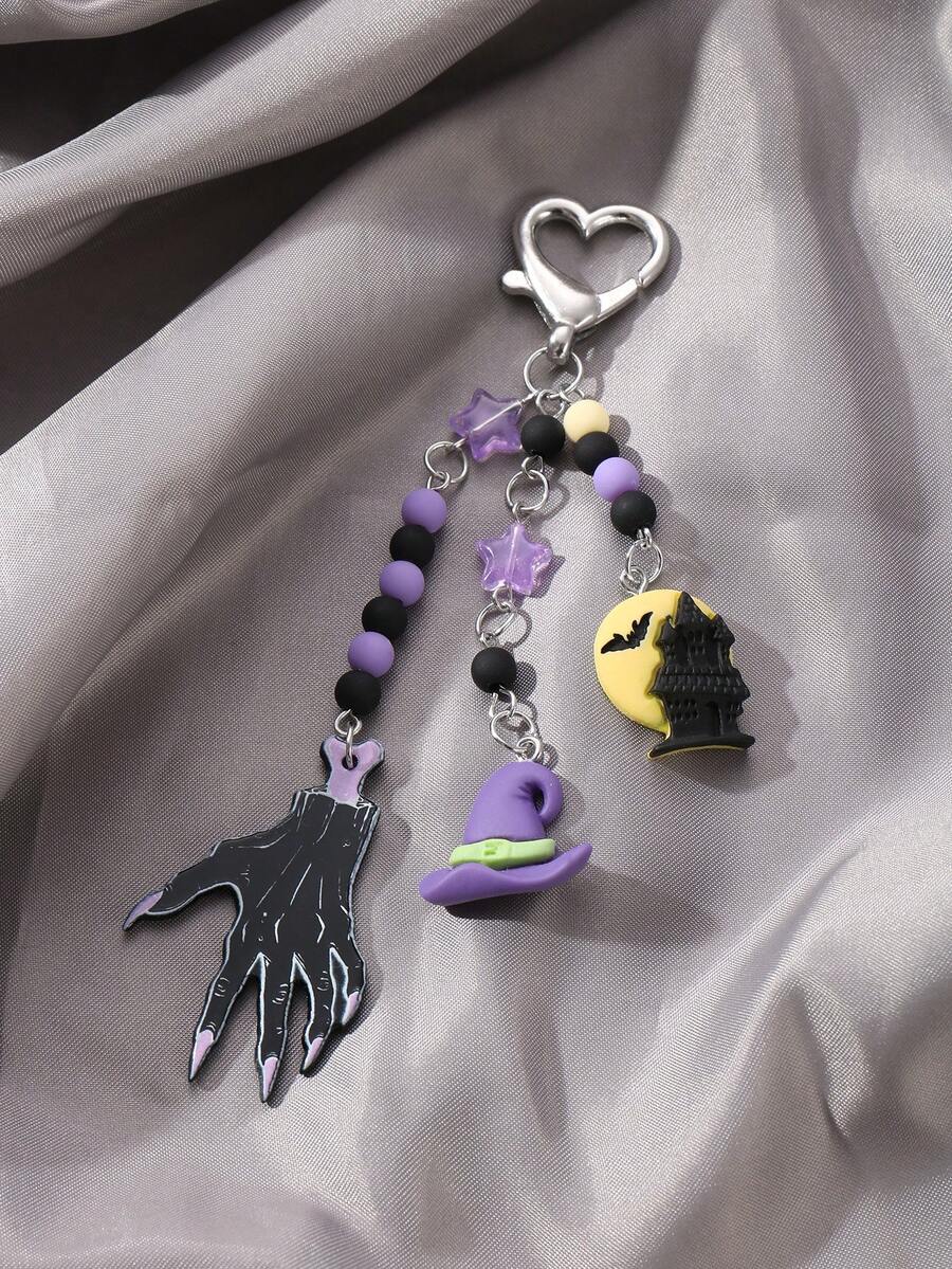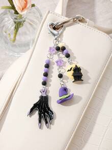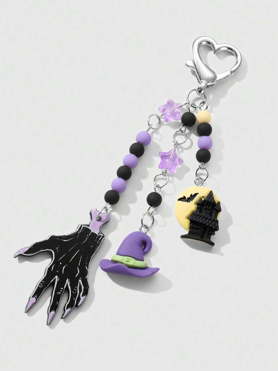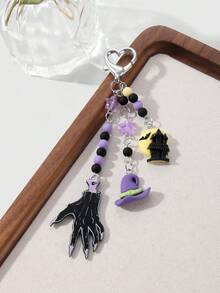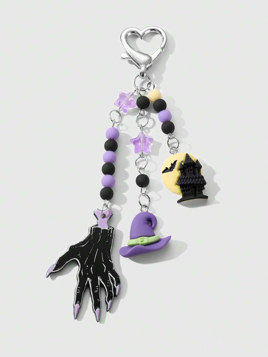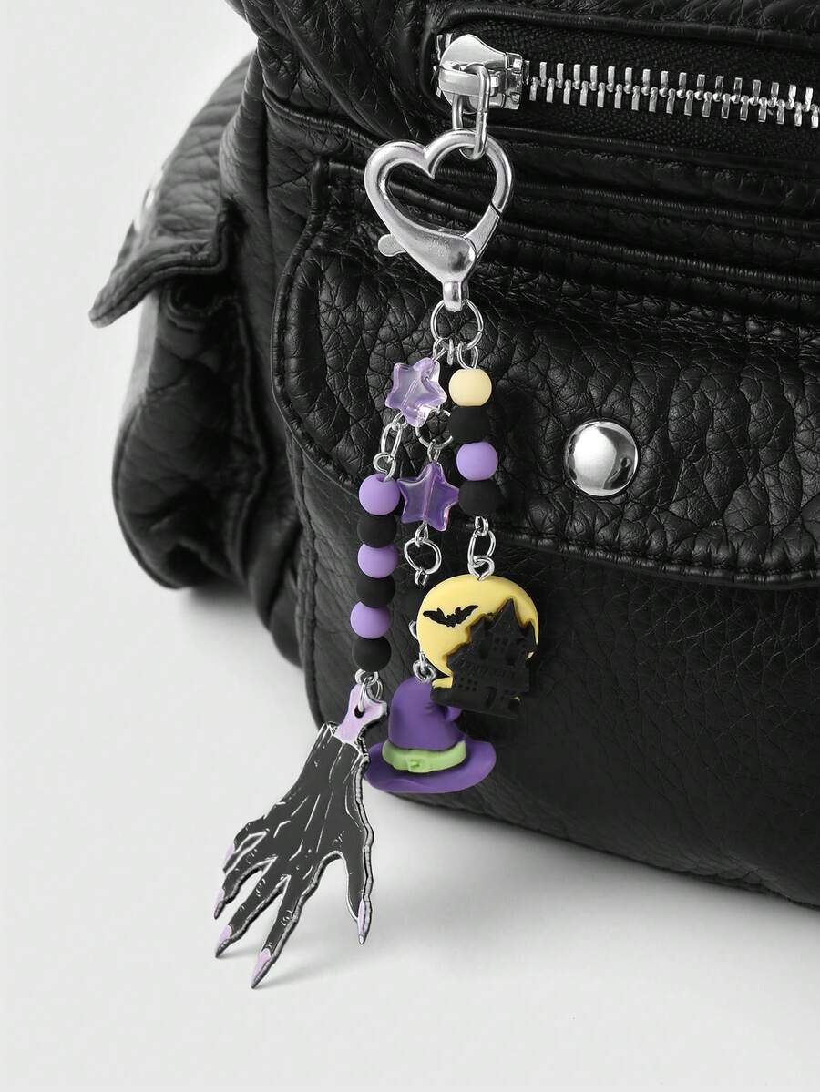 Goth 1pc Silver Rhinestone & Pearl Embellished Star Pendant Bag Charm Keychain, Simple & Stylish Gift For Women