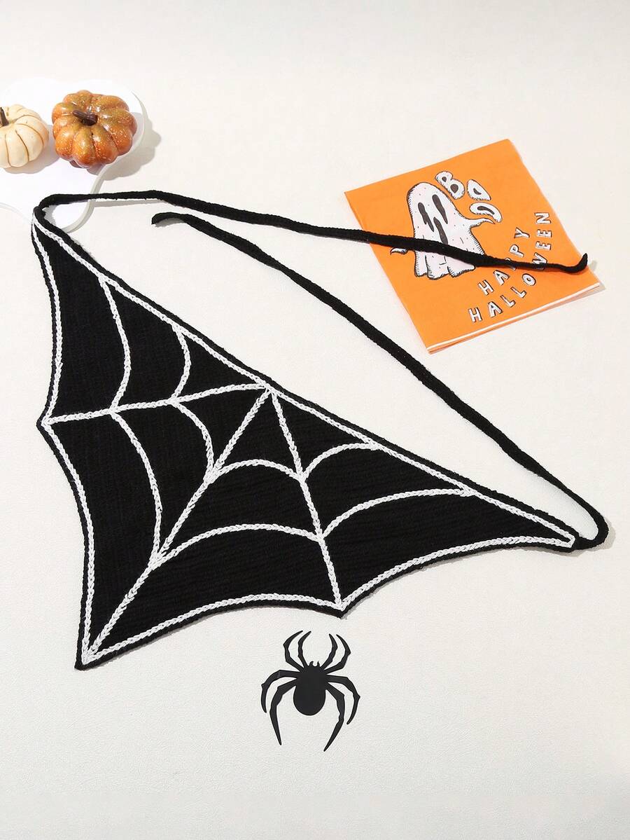 Goth 1pc Spider Web Crochet Triangle Scarf Headband Halloween Decor