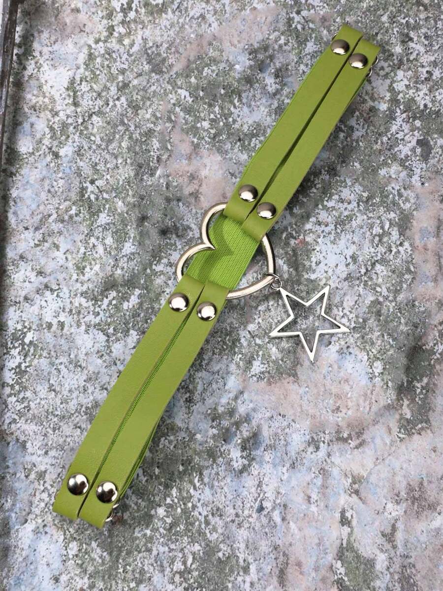 Goth 1pc Star Double-Layer Pu Leg Chain With Metal Heart & Pu Leather Thigh Ring, Sexy