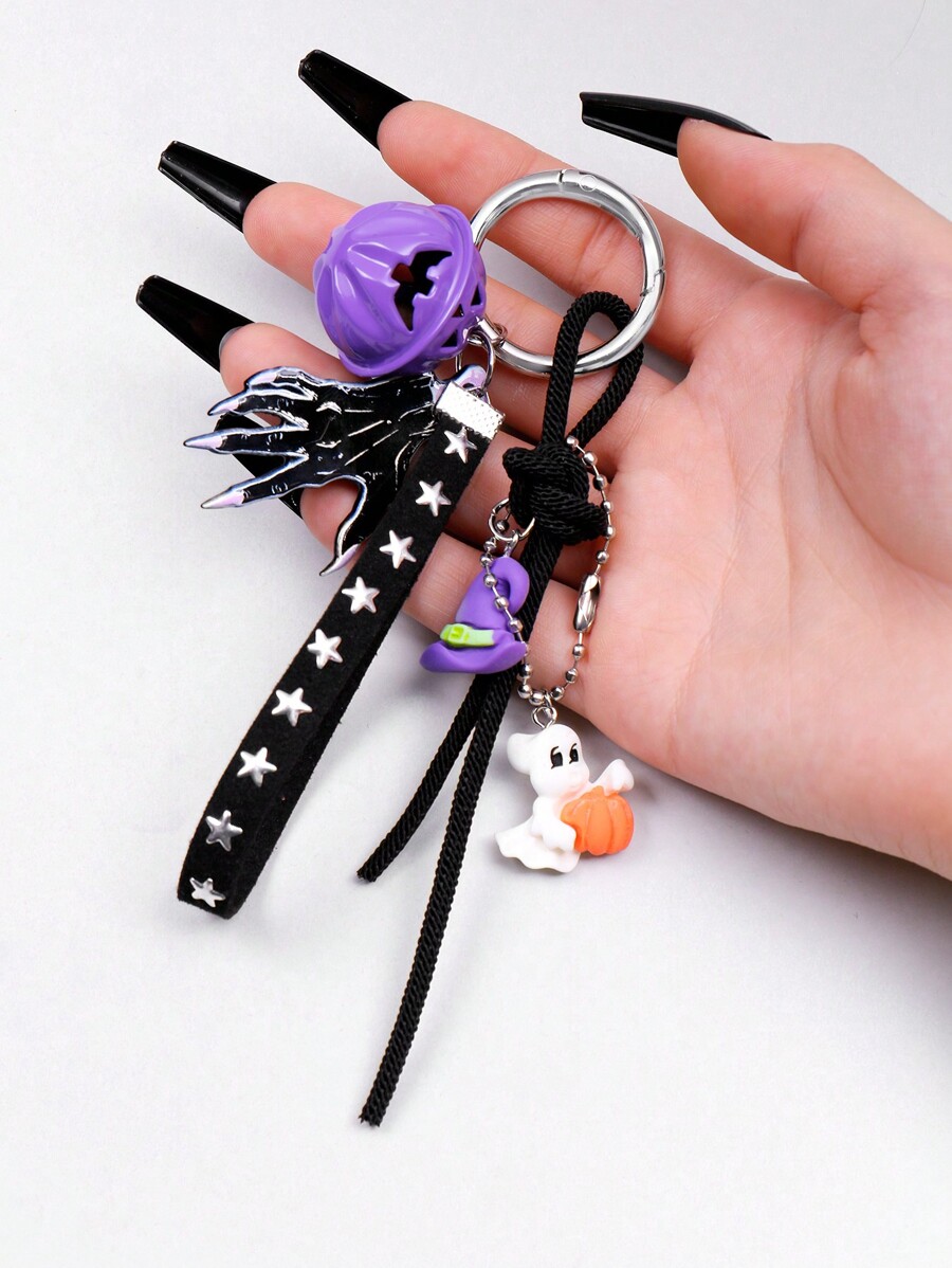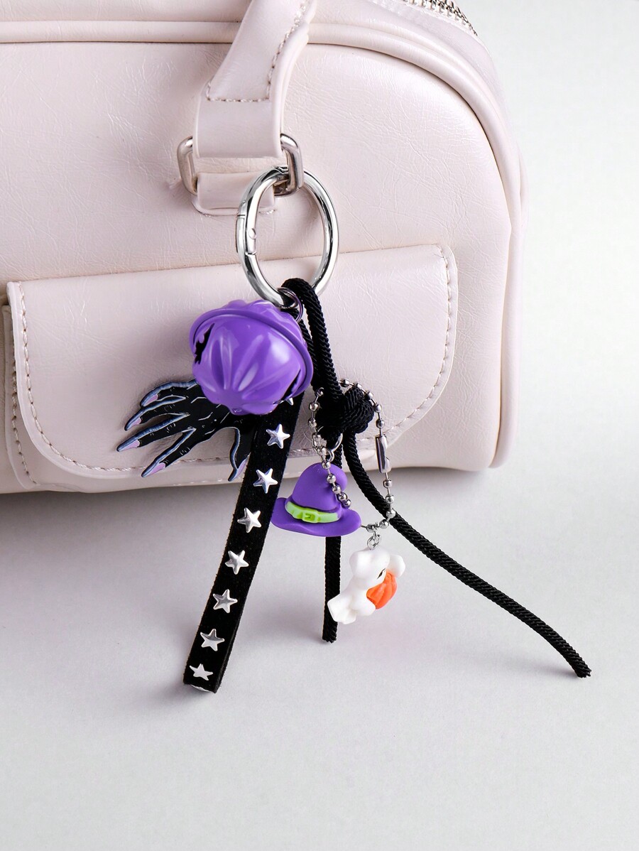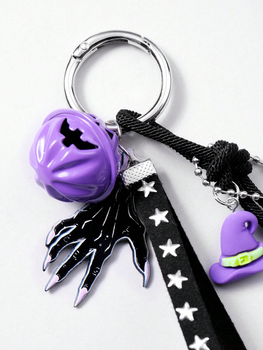 Goth 1pc Unique Purple Pumpkin Bell, Hat, Skeleton Hand, Black Star Woven Rope Bag Charm & Keychain, Suitable For Daily Wear And Holiday Gifts