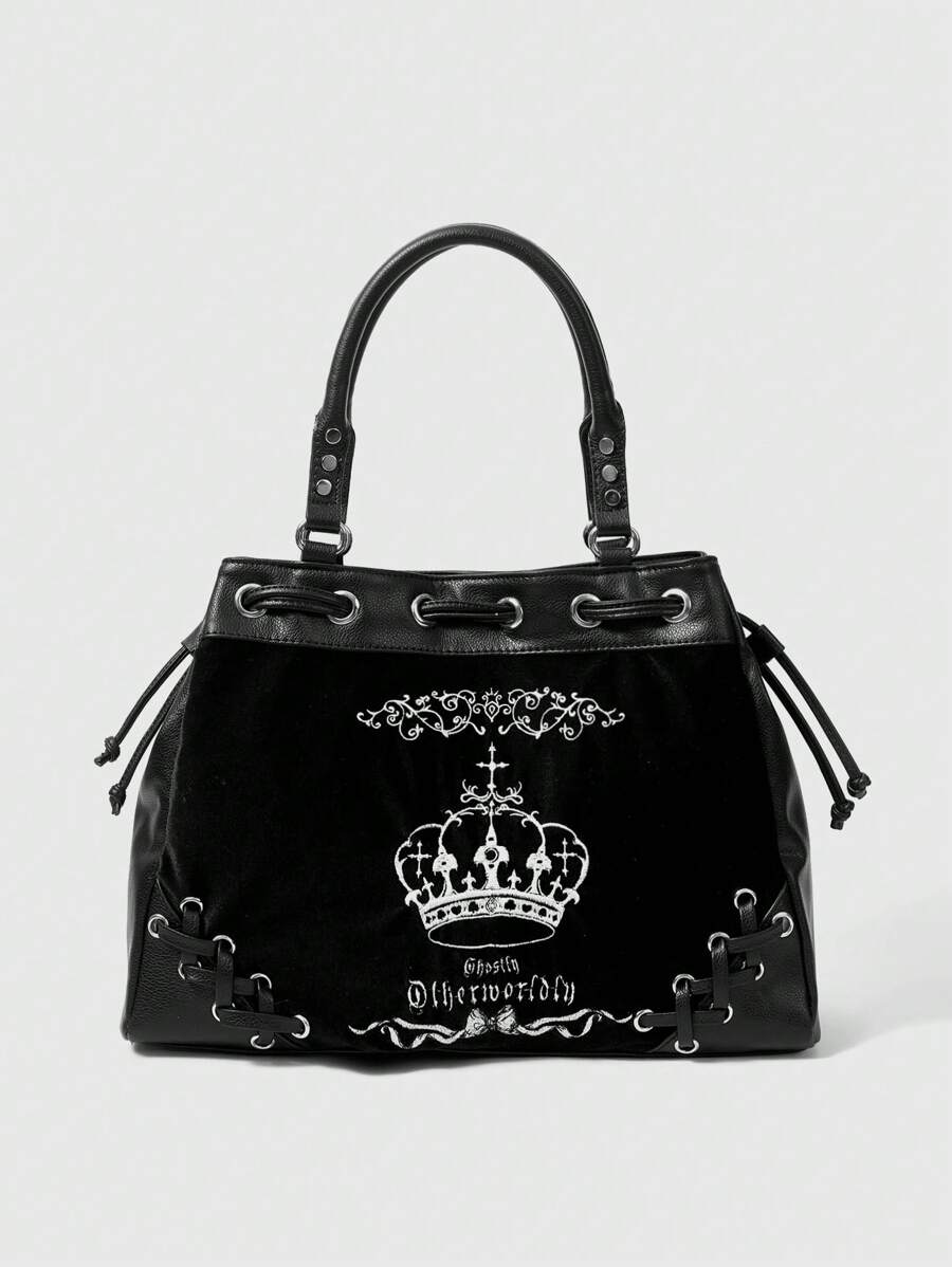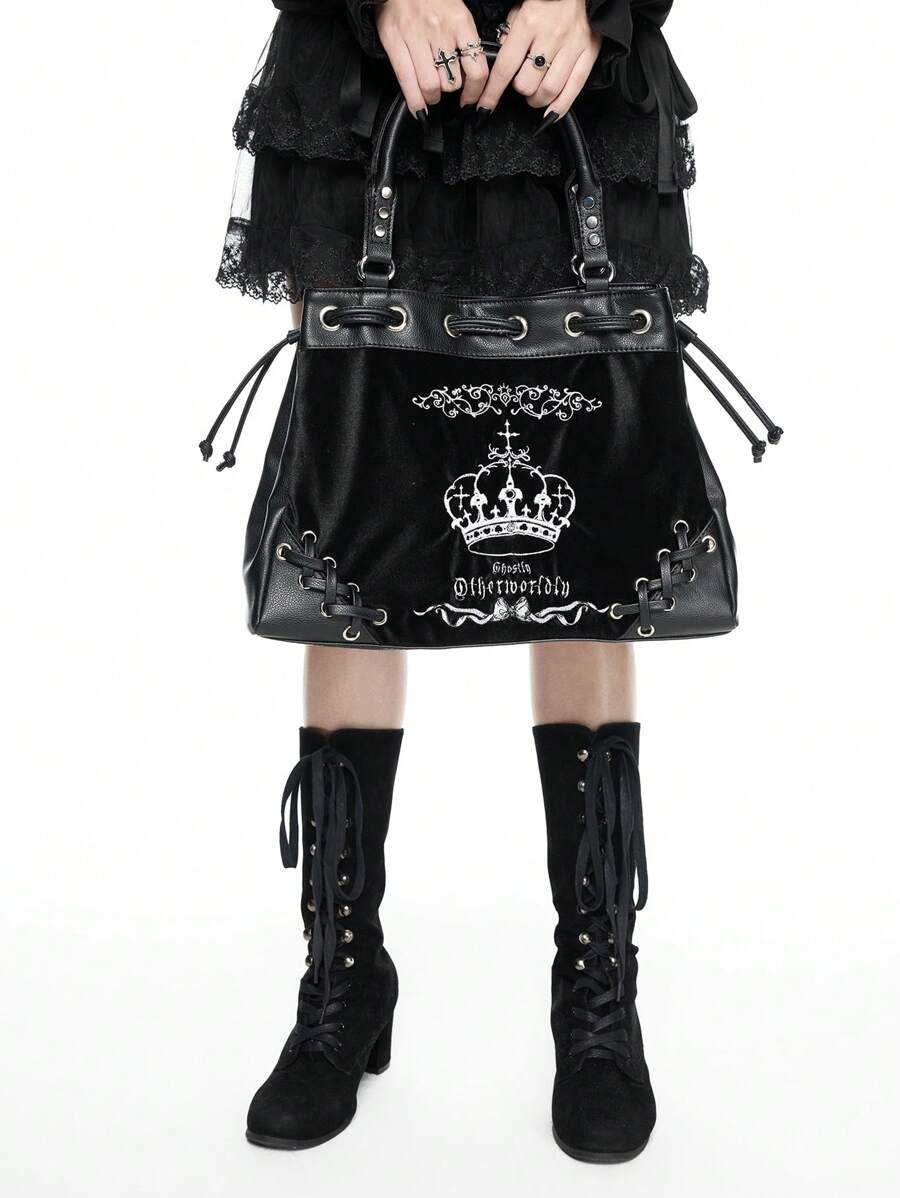 Goth 1pc Velvet Swan Embroidery Tote Bag