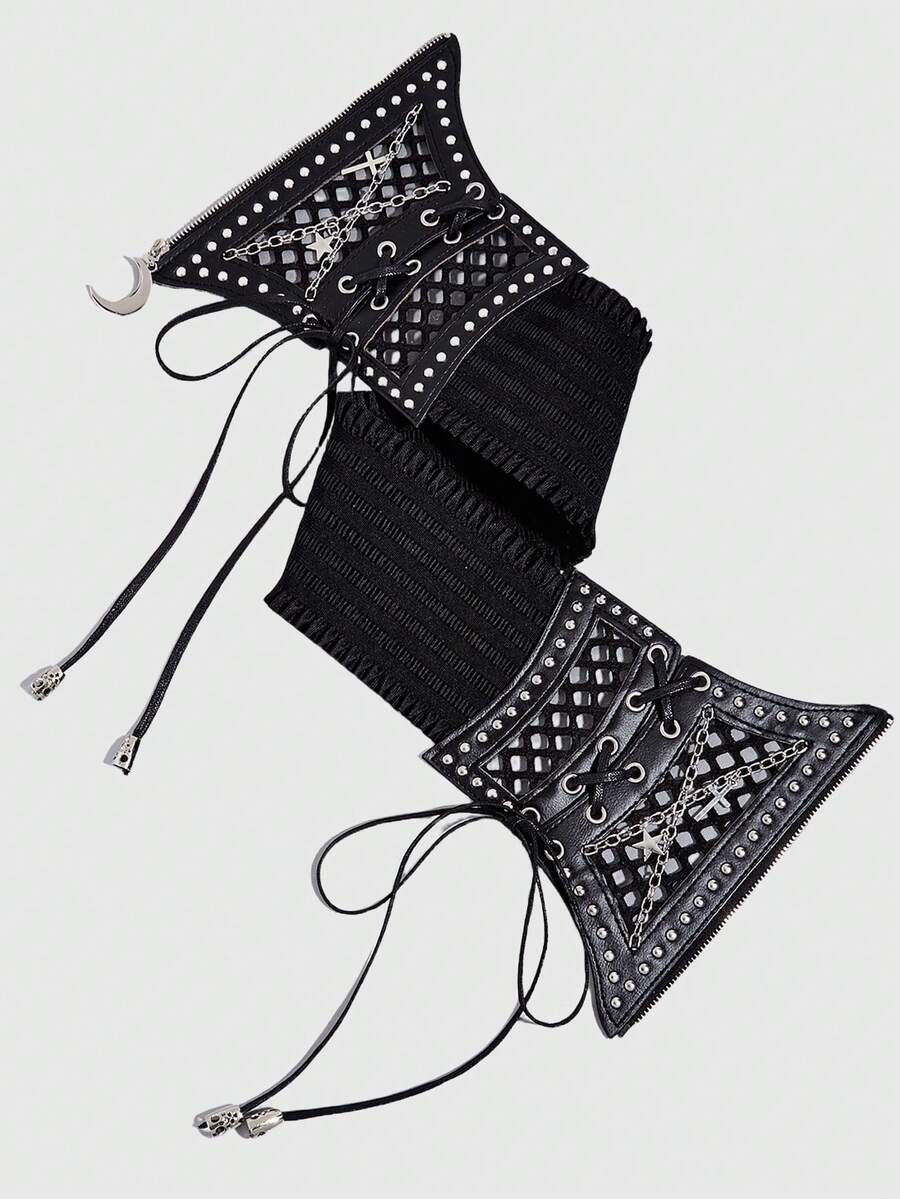 Goth 1pc Women Black Hollow Mesh Cross Chain, Pentagram, Moon Decor Punk Style Waist Belt Accessory, Versatile Dress Decoration