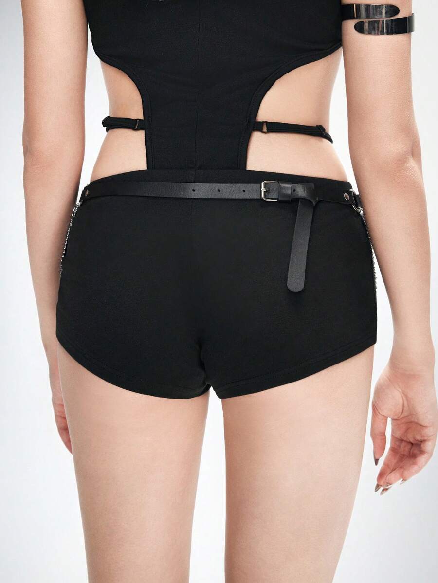 Goth 1pc Women's Black Crystal Chain Decor Punk Style Chain Waist Belt, Versatile Accessory For Dresses