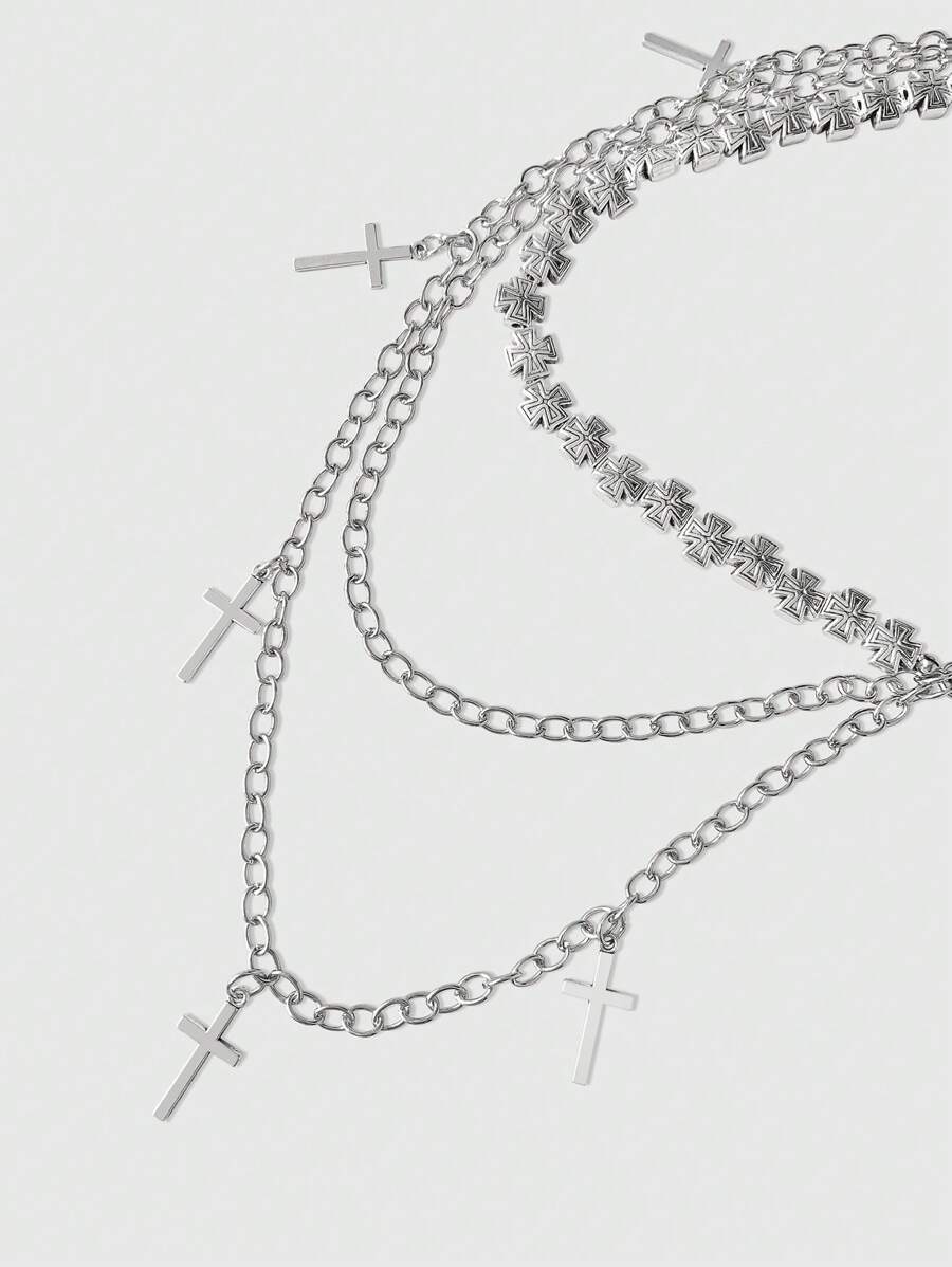 Goth 1pc Women's Double-Layer Cross Metal Waist Chain, Three-Tier Punk Street Style, Versatile For Daily Wear