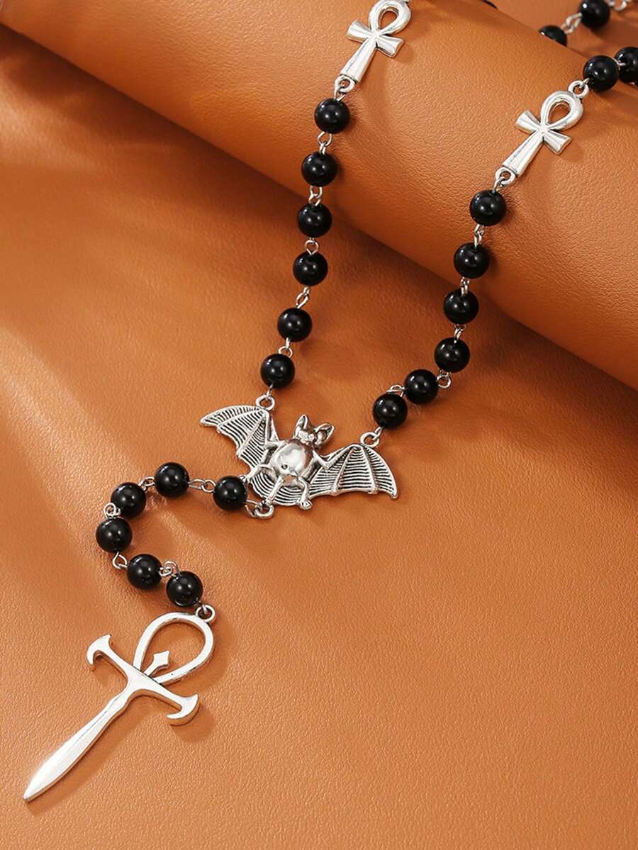 1pc Women's Gothic Vintage Bat Cross Pendant Necklace